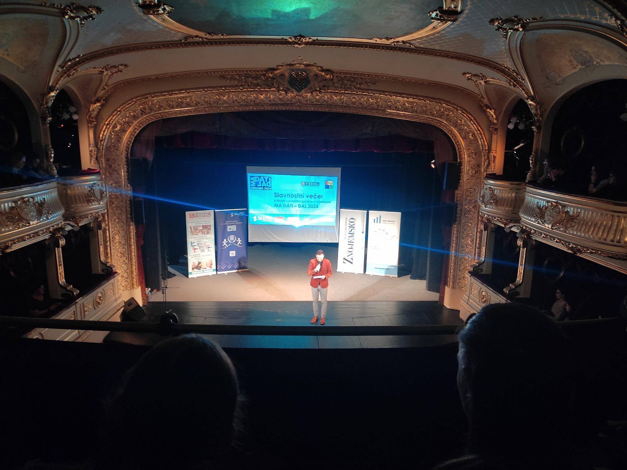 Večer pro nás byl připraven slavnostní večer v městském divadle, který moderoval Vojtěch Bernadský. Následně nás autobusy zavezli na hotel Premium, kde pro studenty byla připravena diskotéka ve vinárně.