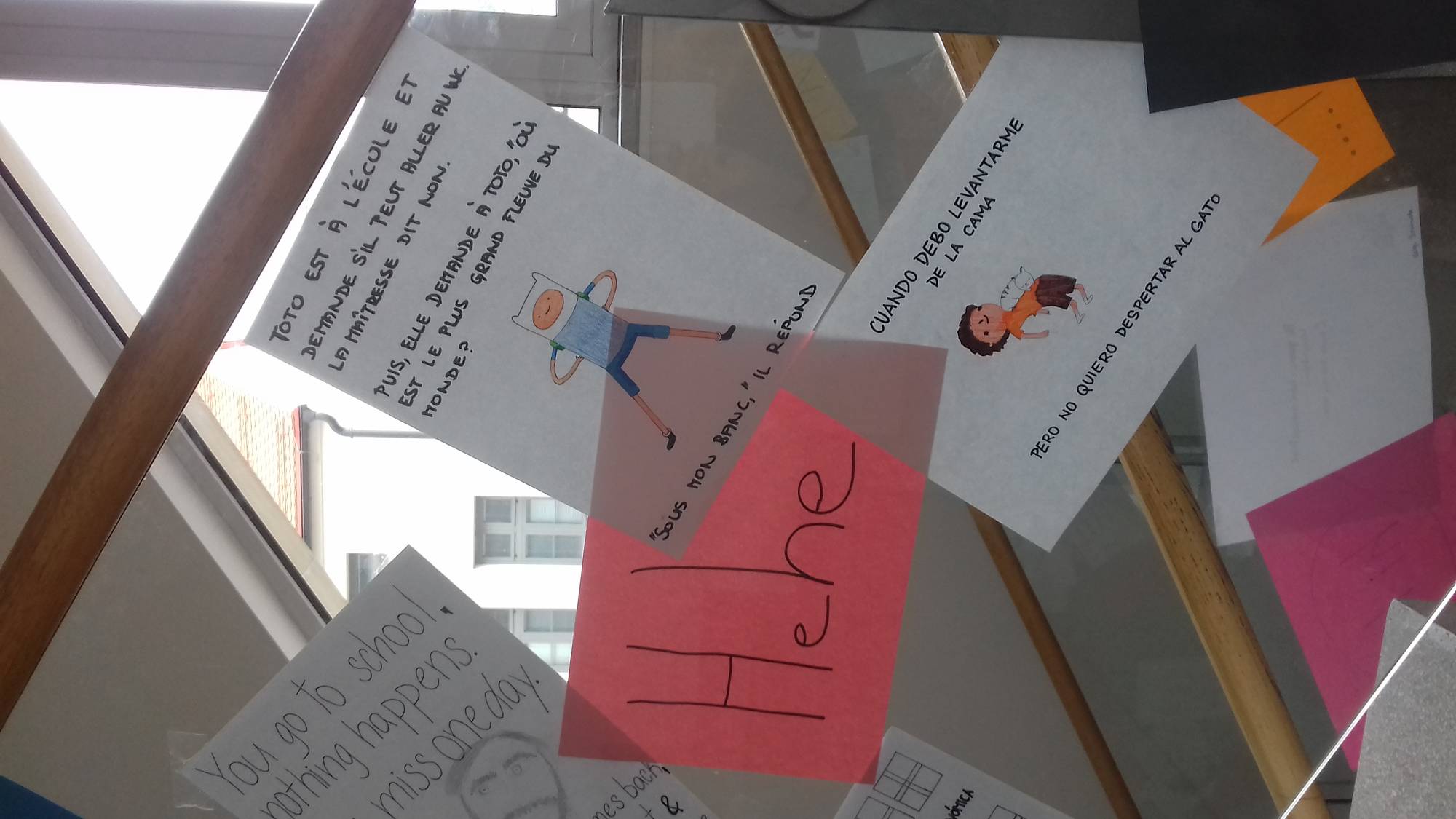 Letošní Evropský den jazyků slavíme výstavbou "Domu smíchu". Žáci napsali a nakreslili vtipy v různých jazycích, které se učí na naší škole. Vtipy v angličtině, francouzštině, španělštině, němčině, ruštině a italštině tak naplnily školu mezinárodním smíchem - chachacha, hihihi, xaxaxa, i ja ja ja, ah ah ah ...!