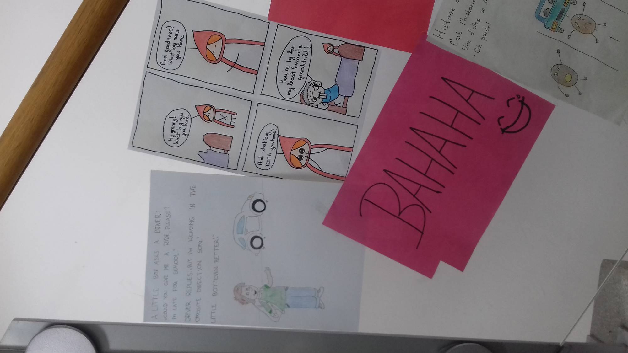 Letošní Evropský den jazyků slavíme výstavbou "Domu smíchu". Žáci napsali a nakreslili vtipy v různých jazycích, které se učí na naší škole. Vtipy v angličtině, francouzštině, španělštině, němčině, ruštině a italštině tak naplnily školu mezinárodním smíchem - chachacha, hihihi, xaxaxa, i ja ja ja, ah ah ah ...!
