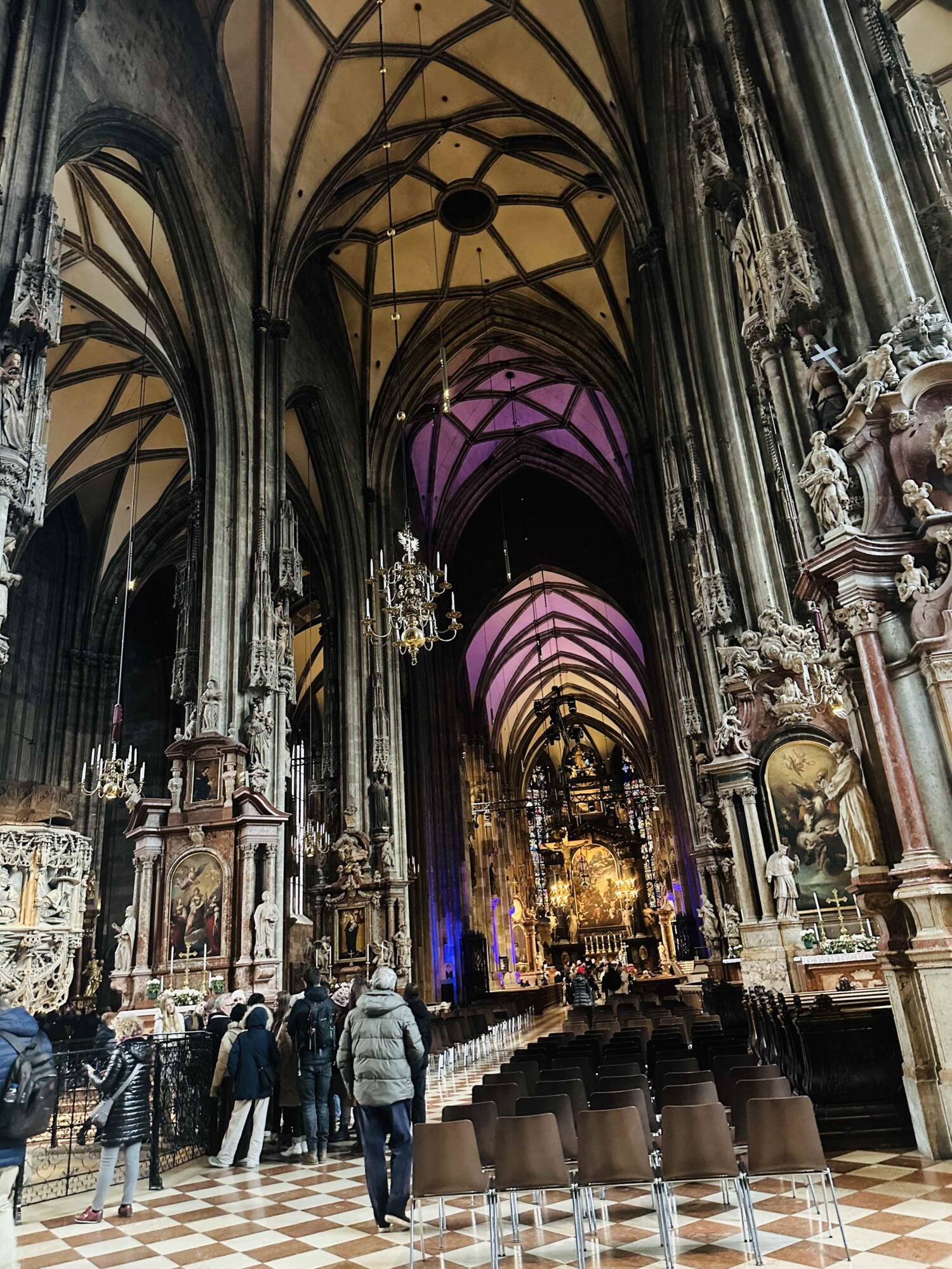 Šli jsme kolem Ringstrasse, která obklopuje centrum města, a zastavili se u Michaelerplatz, Kohlmarkt a Graben. Všude kolem nás se linula vůně svařeného vína a pečených kaštanů z vánočních trhů. Nejvíc nás okouzlila katedrála sv. Štěpána – její vyhlídková platforma nám nabídla neuvěřitelný výhled na celé město. Poté jsme již mohli nasávat vánoční atmosféru na trhu před vídeňskou radnicí. Užívali jsme si kouzlo svátků, nakupovali dárky a ochutnávali místní dobroty. Ve večerních hodinách nás čekal odjezd na ubytování.