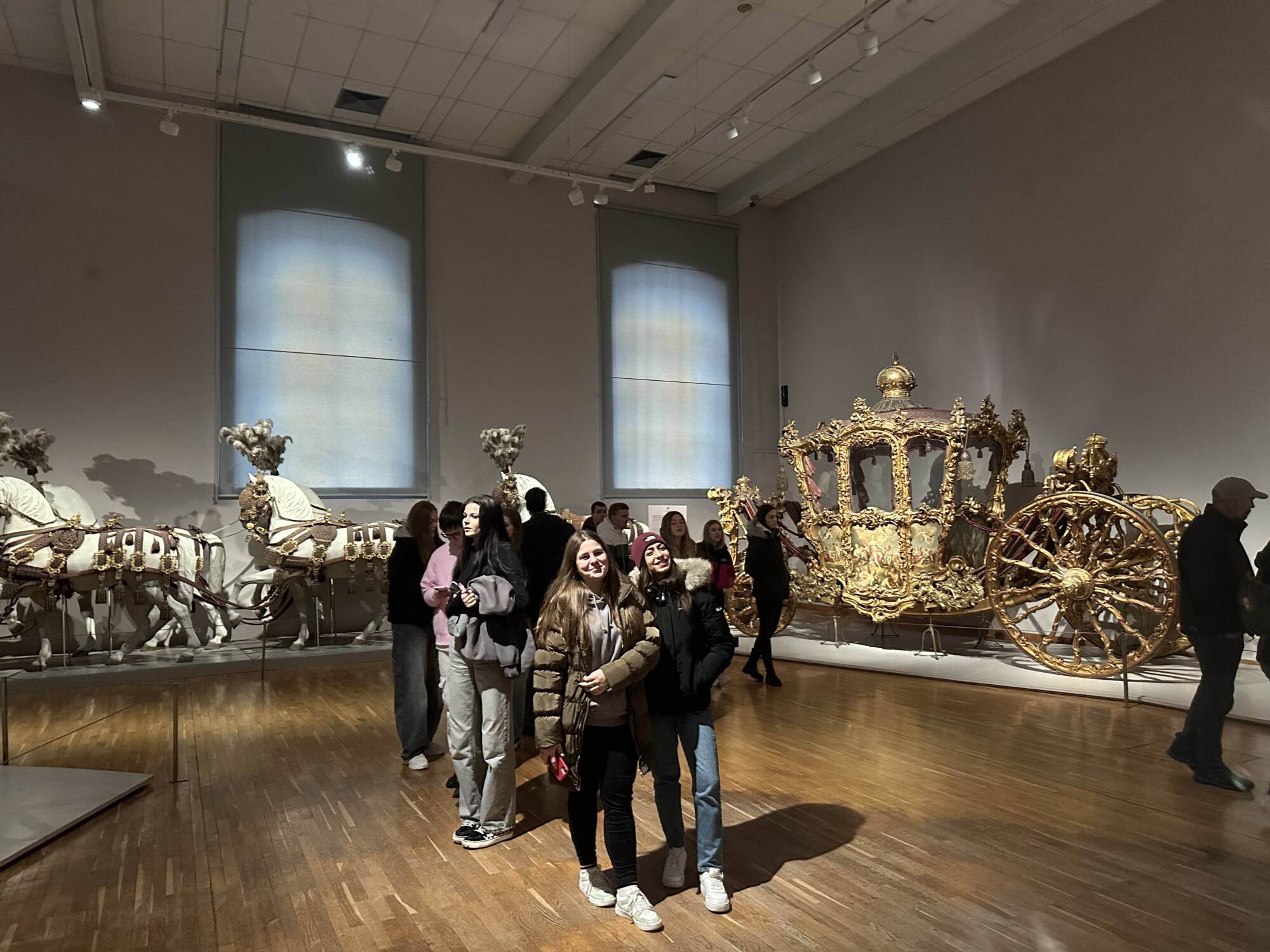 Druhý den jsme začali úchvatnou snídaní v hotelu a následně zamířili k zámku Schönbrunn, letnímu sídlu císařské rodiny. Procházka zahradami nás zavedla až k letohrádku Gloriette, odkud se naskytl nádherný výhled na město, ačkoliv počasí nebylo až tak příznivé. Ve Wagenburgu jsme obdivovali císařské kočáry, saně a nosítka – byla to fascinující ukázka Habsburského luxusu!