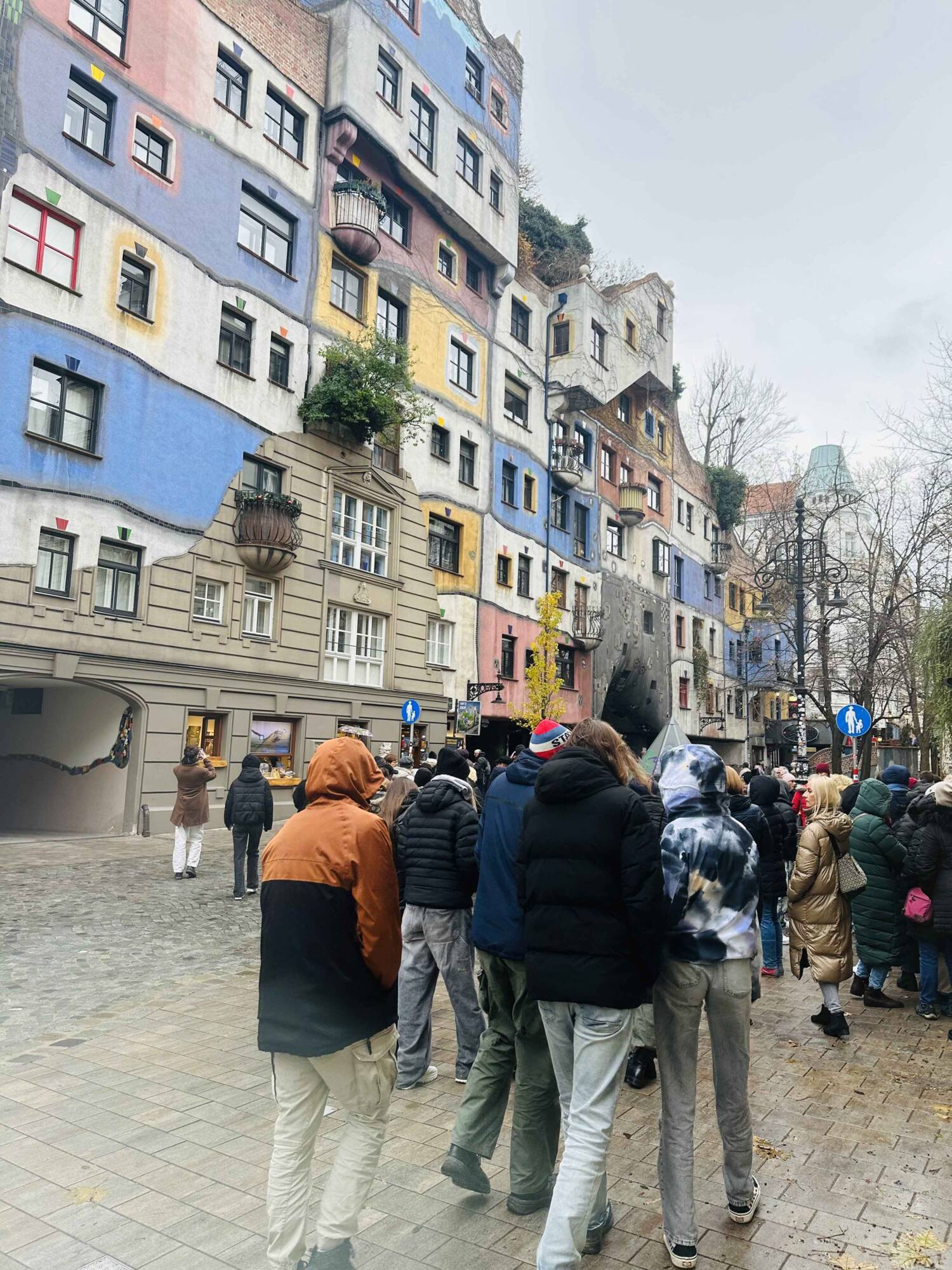 Poté jsme pokračovali k pestrobarevnému domu Hundertwasserhaus, kde jsme mohli obdivovat dílo tohoto nenapodobitelného umělce – Friedensreicha Hundertwassera.