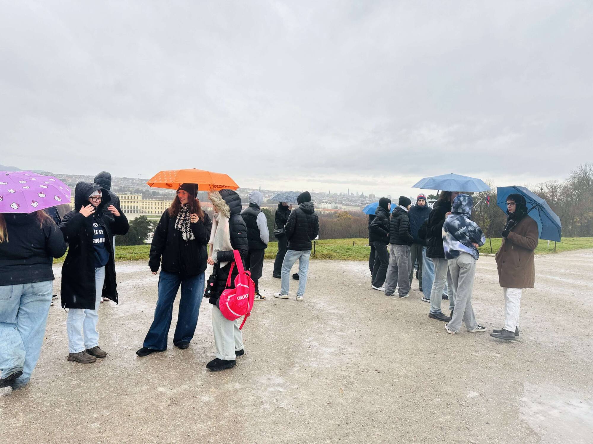 Druhý den jsme začali úchvatnou snídaní v hotelu a následně zamířili k zámku Schönbrunn, letnímu sídlu císařské rodiny. Procházka zahradami nás zavedla až k letohrádku Gloriette, odkud se naskytl nádherný výhled na město, ačkoliv počasí nebylo až tak příznivé. Ve Wagenburgu jsme obdivovali císařské kočáry, saně a nosítka – byla to fascinující ukázka Habsburského luxusu!