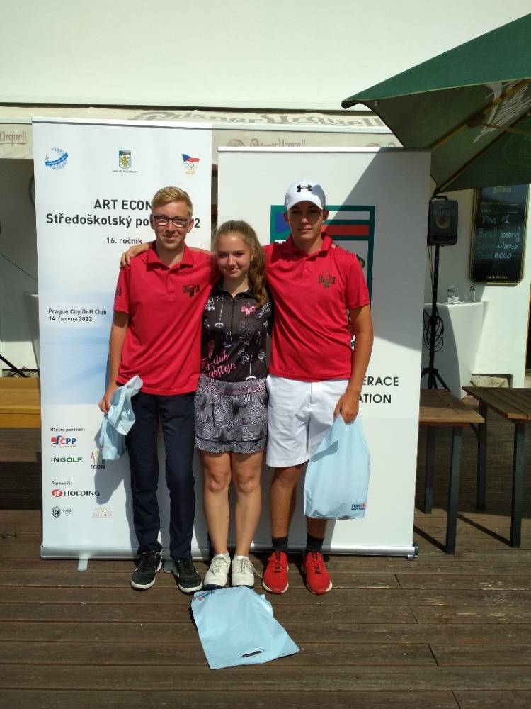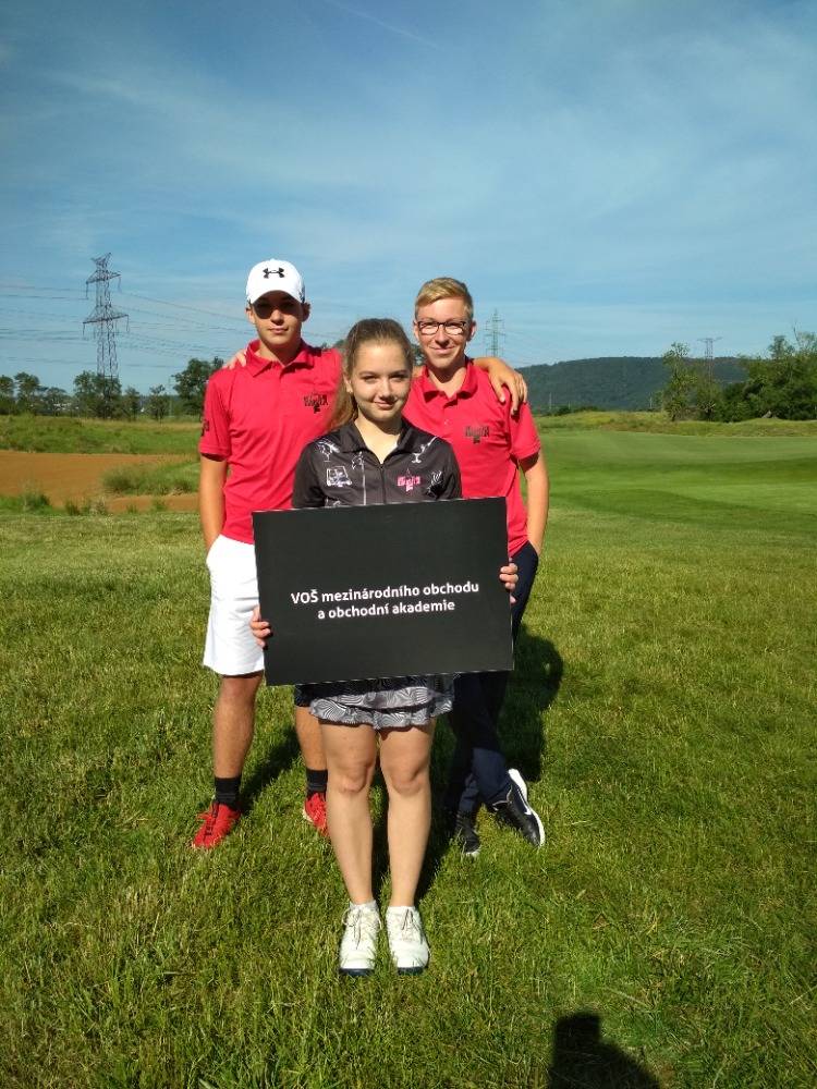 Reprezentanti naší školy ve složení Jakub Keller O3B, Matěj Petrášek O1A, Eliška Husáková – budoucí studentka 1. ročníku – si vedli mezi konkurencí, kde bylo mnoho hráčů z řad profesionálů, velmi statečně. Jakub Keller startoval ve flajtu v 9: 20 hod, Eliška Husáková v 9:40 hod, Matěj Petrášek v 10:20 hod. S nástrahami 18 jamkového hřiště si poradili a vybojovali pro naši školu hezké 10. místo.