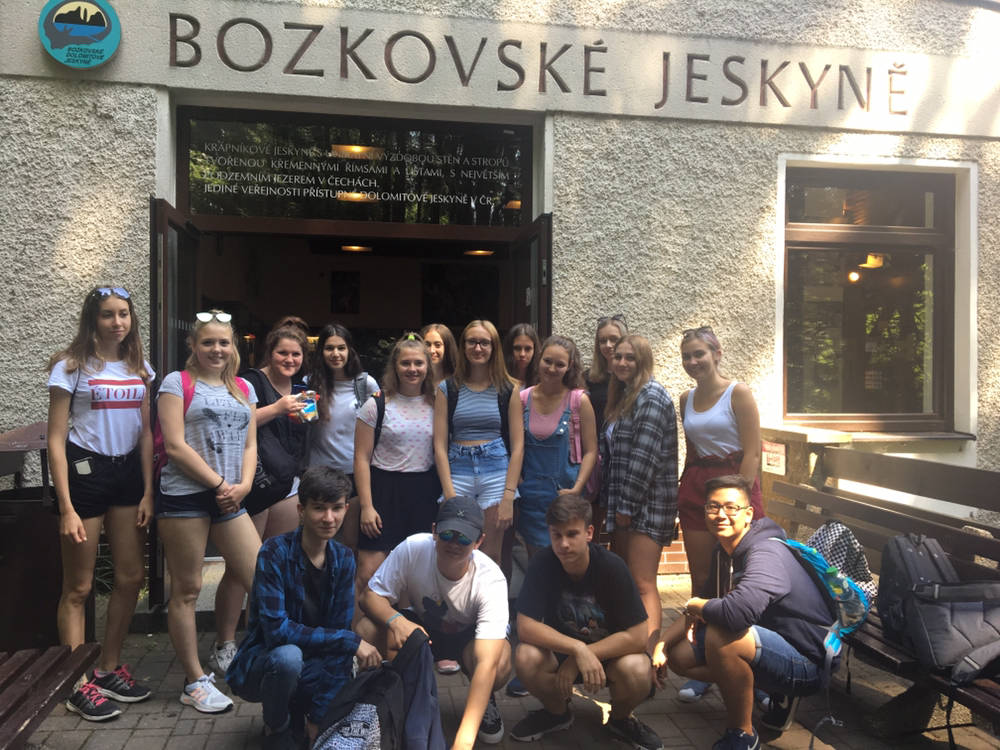 Ve středu 26. června 2019 se zástupci O1. B a O1. D spustili do 25 metrové hloubky jeskyní v Bozkově. Příjemné osvěžení ve strašlivém horku. Na vlastní oči žáci spatřili, jaké krásy umí vytvořit reprezentant usazených hornin dolomit, o kterém se učili v předmětu ZPV. Poté následoval naopak výstup do výšin na bozkovskou rozhlednu (115 schodů). Slunce se právě opíralo o špici Ještědu jakoby tato dominanta Liberce hořela. Pan učitel Lukeš uplatnil své zeměpisné znalosti a seznamoval nás s dalšími zajímavostmi v okolí. Čas do odjezdu busu jsme využili osvěžením ve formě poléváním se u zázračné studánky a kofolou a poháry v Dřevěnce. Škoda, že ti, kdo si výlet vymysleli, nakonec nejeli. Text dán dohromady společnými silami, zapsal učitel Jirka Lukeš.