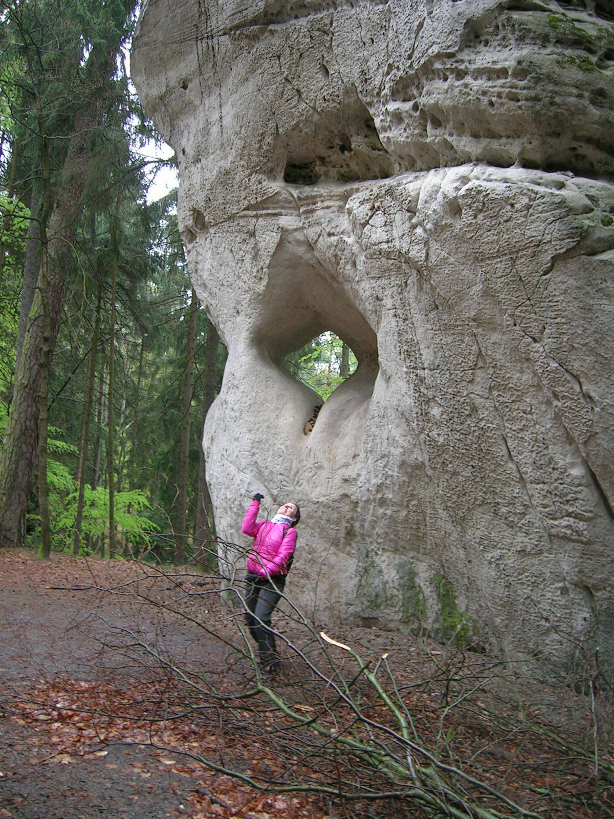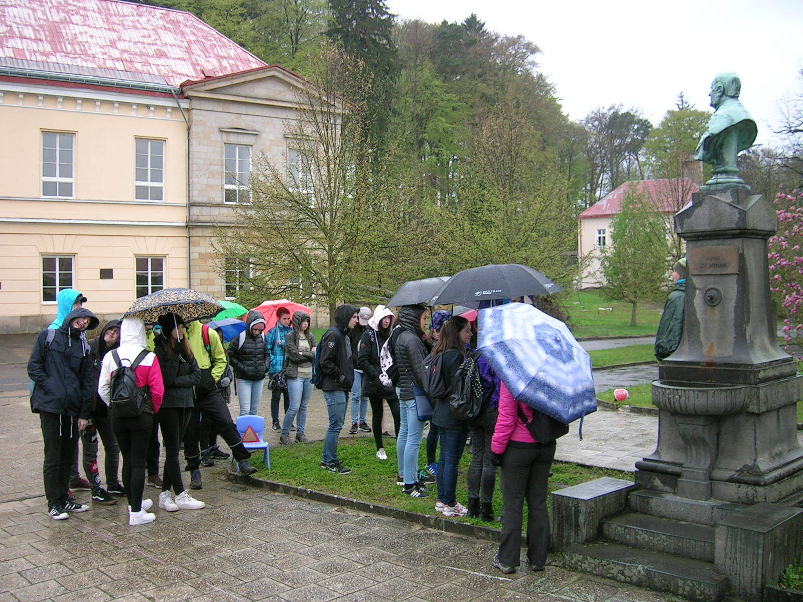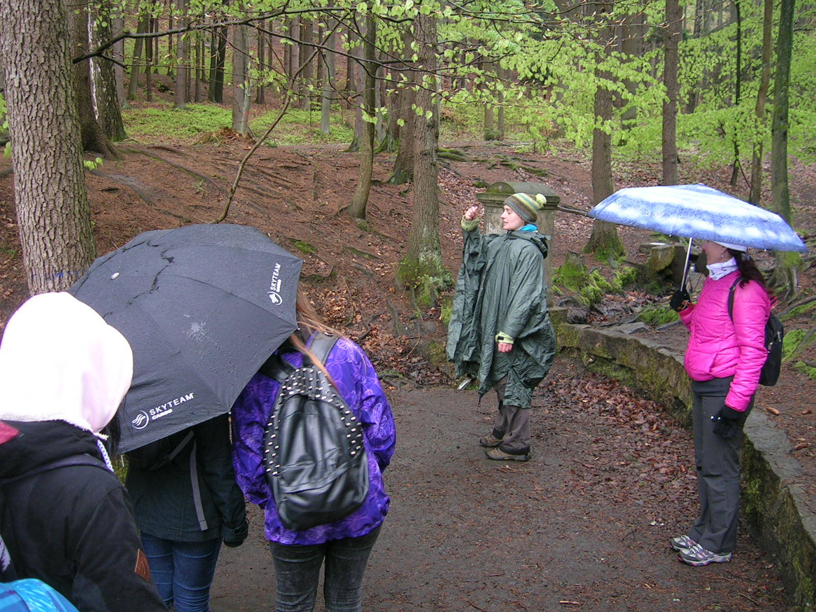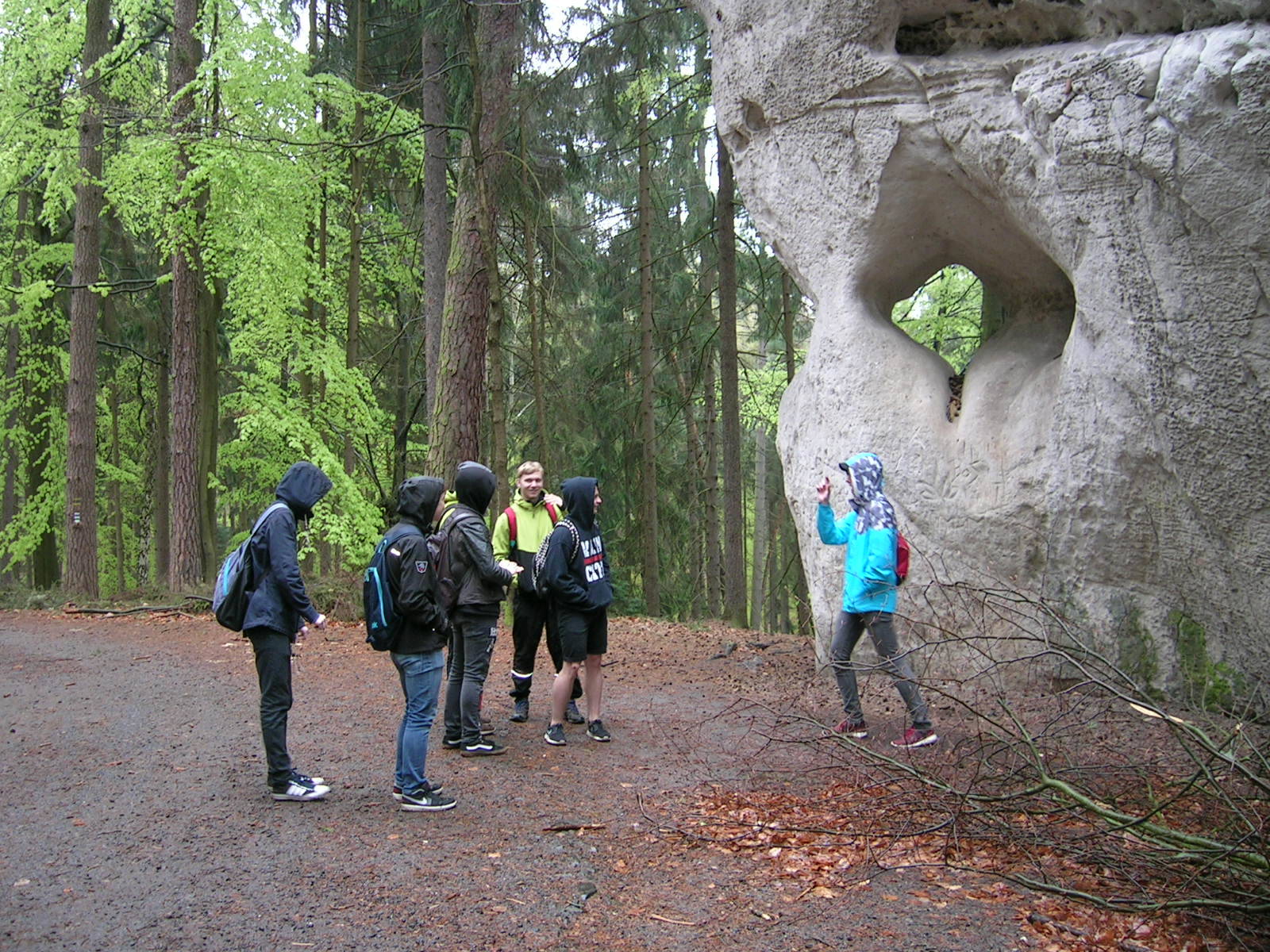 O týden později, ve středu 26. dubna bylo deštivé počasí, které nás donutilo zkrátit vyhlídkový okruh. Tentokrát nás prováděla naše bývalá kolegyně Maruška Bémová. I přes nepřízeň počasí žáci absolvovali významnou část naučné stezky. Obě exkurze jsme již tradičně zakončili u nejstaršího dubu Českého ráje, který se nachází v kempu Sedmihorky.
