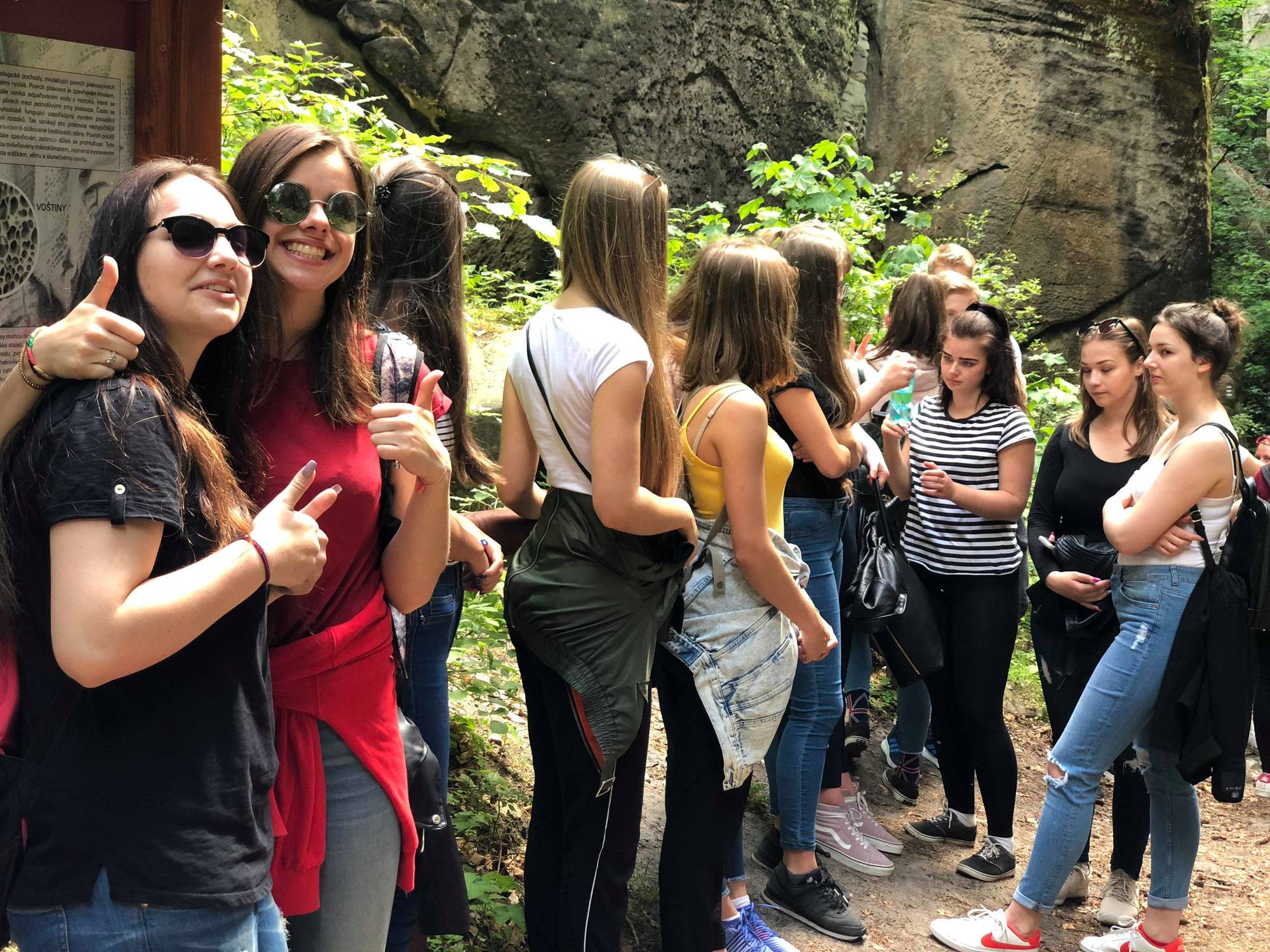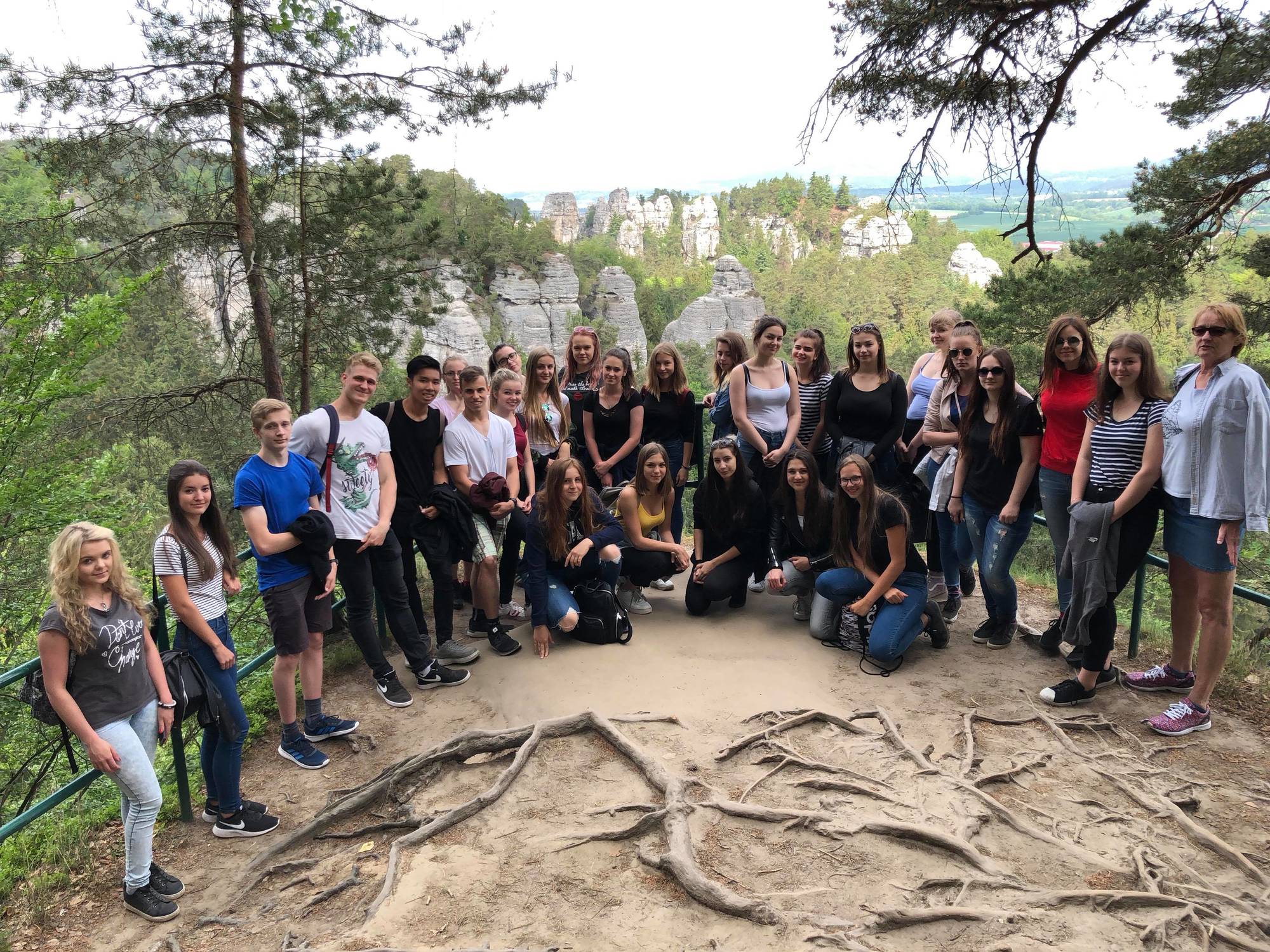 Průvodce nám dělal pan Preisler ze Střediska ekologické výchovy Český ráj. Provedl nás krajem pískovcových skal a hlubokých lesů. Ukázal nám stopy dávné historie, která je v krajině stále vidět. Hruboskalsko, potažmo celý Český ráj je jedinečnou učebnicí geologie i geomorfologie. Velice zajímavé byly ukázky zdejších ekosystémů. Jelikož se jedná o území CHKO, je zde snaha zachovat tzv. les blízký přírodě. Takovou třešničkou na dortu byla návštěva arboreta na Bukovině. Exkurzi jsme již tradičně zakončili u nejstaršího dubu Českého ráje, který se nachází v kempu Sedmihorky.