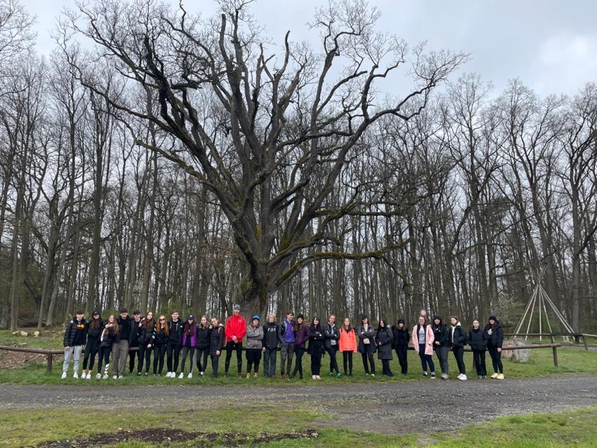 Poslední zastávka byla v kempu v Sedmihorkách, kde jsme si hromadně vyfotili fotografii u 300 let starého dubu letního s výškou 25 metrů.