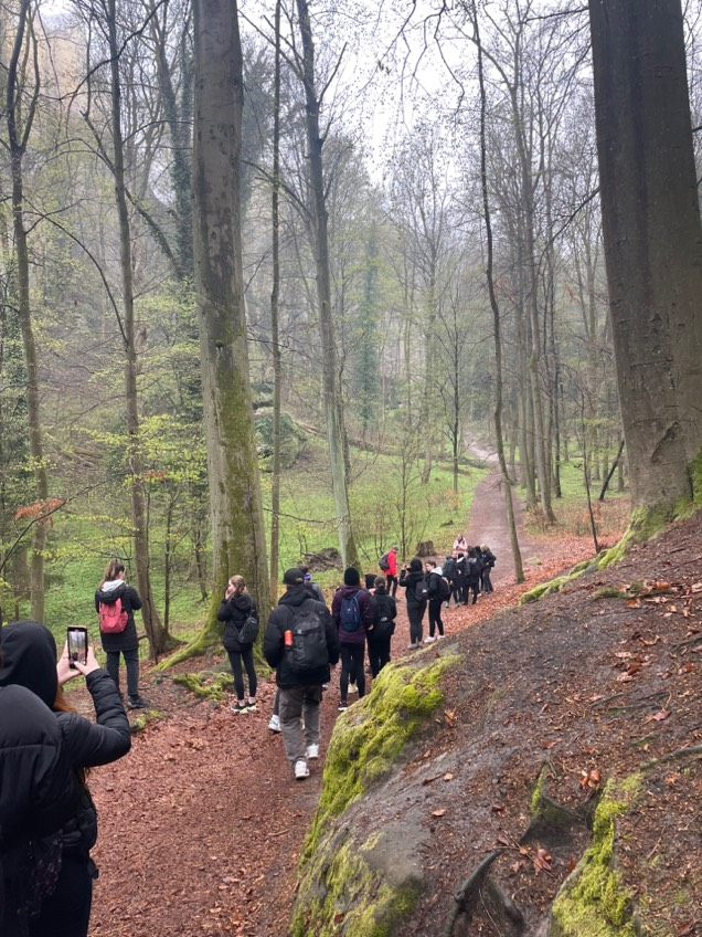 První zastávka byla u lázní v Sedmihorkách, kde jsme se dozvěděli zajímavosti o tomto vyhlášeném místě i o procedurách zde používaných. Další zastávka byla nedaleko od první. U nenarušeného lesa, kde jsme si pověděli věci ohledně stromů a různých druhů lesů. Naše cesta dále vedla směrem na Osudovou, kde jsme si poslechli zajímavosti o této skále. Pár žáků i s panem učitelem Jiřím Lukešem, který nás doprovázel, se pokusili o prohození této osudové díry. Další zastávka byla u zámku Hrubá Skála, kam jsme se ale podívat nešli. To čeká jen některé z nás, kteří se zúčastní kurzu zde v Českém ráji. Na tomto místě jsme zase obohatili své vědomosti a šlo se dál cestou na Adamovo lože, což bylo další stanoviště. Cestou jsme okusili svou šířku v úzké cestičce mezi skalami. Všichni jsme zdatně prošli, a tak jsme mohli poslouchat o tomto osudovém místě. Jako další následovalo Arboretum Bukovina, kde jsme měli šanci se podívat na různé cizokrajné stromy. Byla nám zde udělená i krátká pauza a mohli jsme se jít projít sami. Poté následovala první Vyhlídka U Lvíčka. Výhled nebyl daleký, protože jsme měli velmi mlhavé počasí, ale to tvořilo nádhernou atmosféru. Po tomto místu jsme přešli na rozhlednu číslo dvě, a to byla Janova vyhlídka, kde jsme byli od pana učitele Bohuslava Pavlaty upozorněni, že se tato exkurze pořádá, protože 22.4. se slaví den země. Tak jsme zde uctili překrásnou přírodu, na kterou se jezdí dívat lidé z celého světa. Poté nás ještě čekala jedna zastávka, kde jsme se dozvěděli něco málo o okolních živočiších.