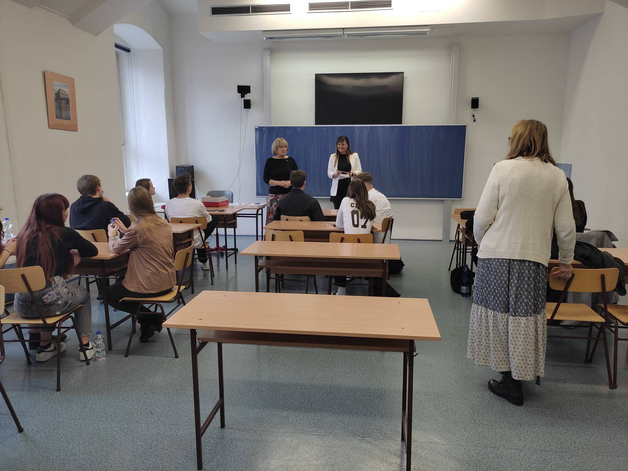 Zatímco pedagogickému dozoru z naší i liberecké obchodní akademie pan ředitel OA Česká Lípa představoval celou školu včetně moderního systému vytápění pomocí vzduchotechniky a moderní počítačové učebny, my jsme se připravovali na první část soutěže, kterou byl znalostní kvíz z oblasti ekonomiky, účetnictví, informatiky a práva.