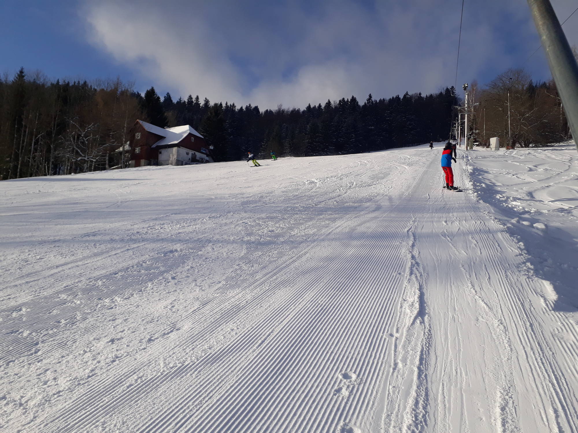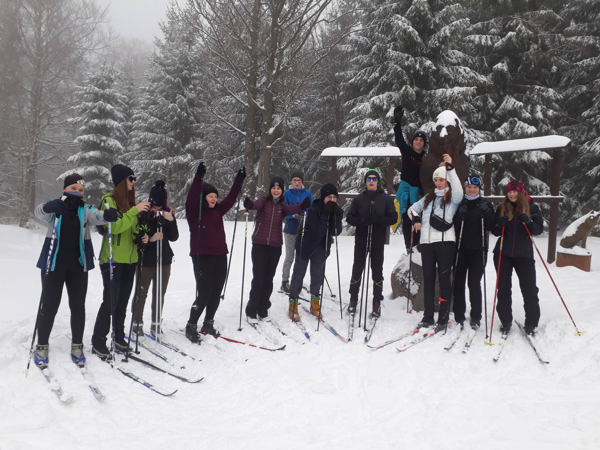 V pondělí 10.února ráno všichni žáci prvního ročníku měli už sbalená zavazadla, svázané lyže a s různými pocity očekávali plánovaný odjezd na týdenní pobyt do Harrachova. Sněhu byl dostatek, zima tak akorát, avšak tak silný vítr jakým byl orkán Sabina nikdo nečekal. Vyděsil všechny natolik, že odjezd byl přesunut až na úterý.