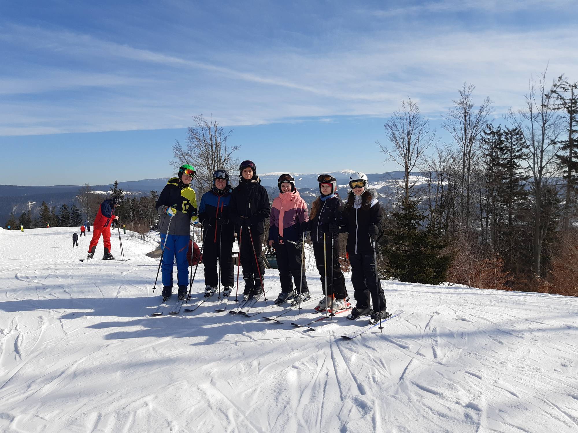 Koncem února a začátkem března se třída O1.C zúčastnila lyžařského kurzu. První den jsme vyrazili do Bedřichova na běžky. Počasí se nám vydařilo, bylo slunečno. Rozdělili jsme se na tři skupiny. Dvě skupiny vyrazily směrem k Nové louce a jedna skupina absolvovala delší (15 km) okruh přes Olivetskou horu. Další dny dojížděla většina z nás vlakem na sjezdovky Tanvaldského Špičáku. Byli jsme rozděleni dle dovedností na snowboardový a lyžařský tým. Většina snowboarďáků byla na prknech poprvé, lyžaři pak už byli většinou pokročilí. Přestože snowboarďáci s jízdou na začátku kurzu teprve začínali, koncem týdne už bez problémů sjeli i červenou sjezdovku. V pátek na nás už čekal jen malý závod a hodnocení celého kurzu. Odměnou pro všechny byly lívance (skvělá pozornost od našich ještě skvělejších učitelek). Počasí bylo úžasné po celou dobu kurzu a všichni jsme si to náramně užili.