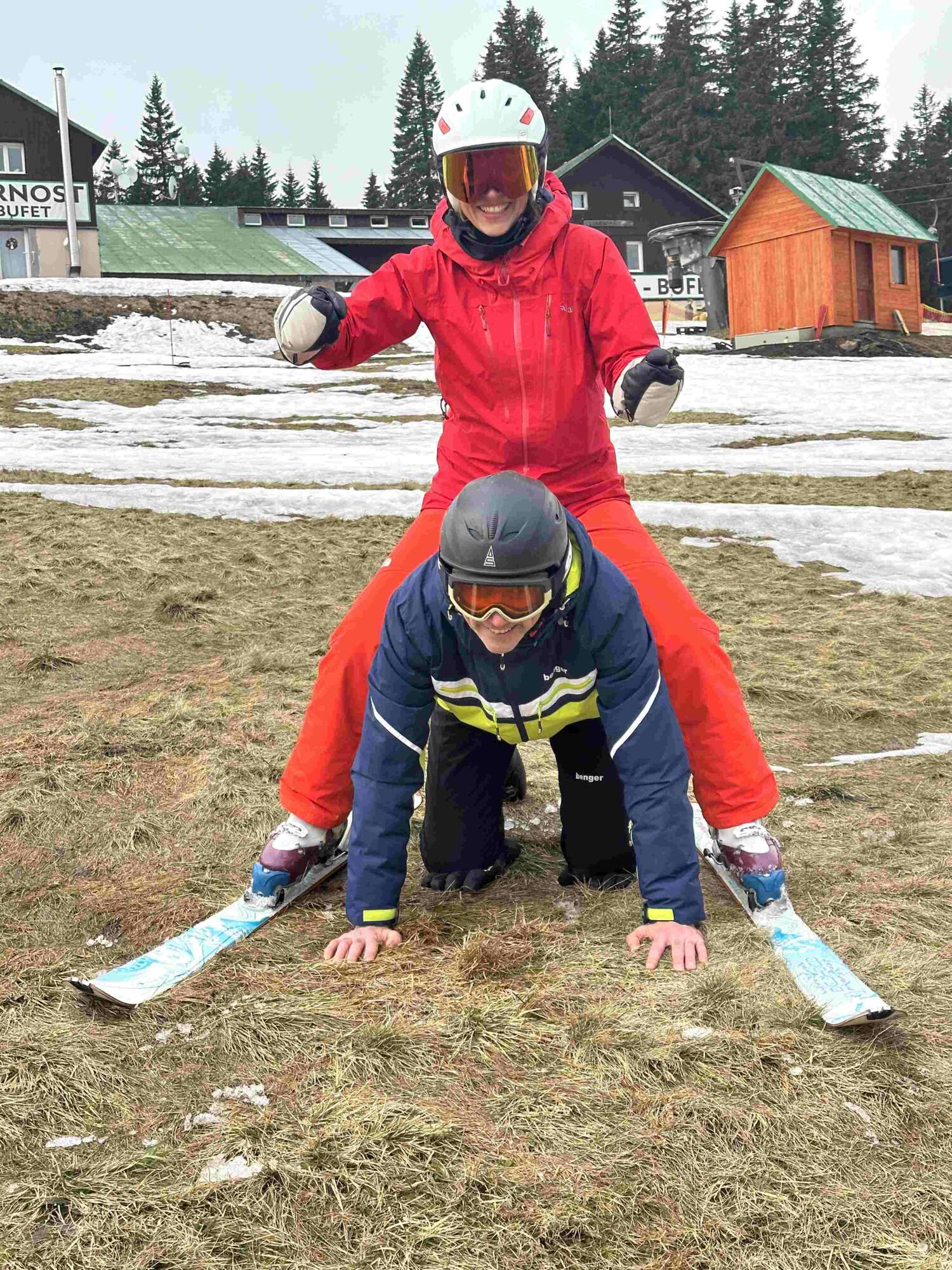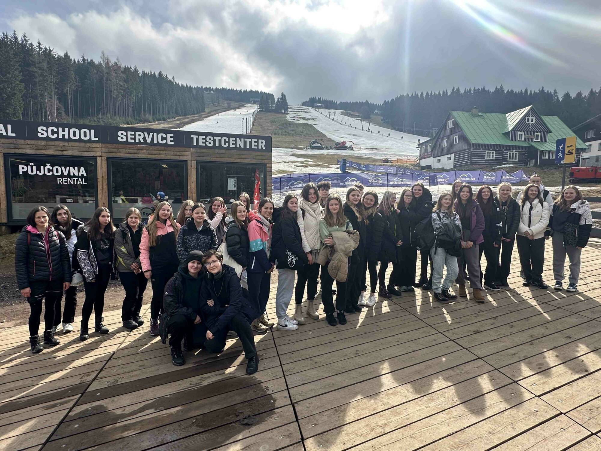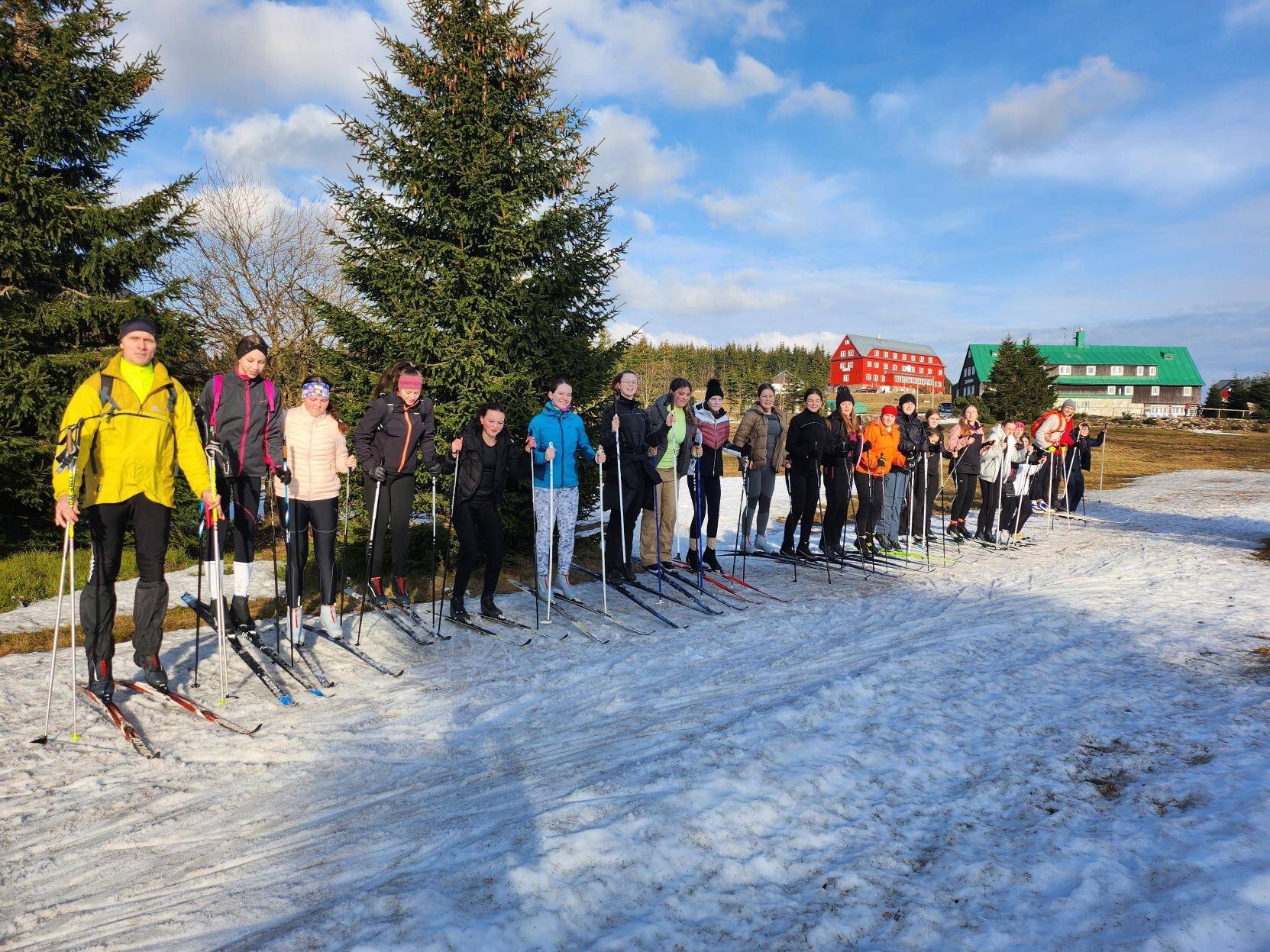 Před začátkem kurzu jsme se obávali, zda nám vůbec zima dopřeje nějaký sníh. Do poslední chvíle jsem tomu nevěřila, ale když jsme se blížili k naší chatě a já viděla první sjezdovky, sice obklopené trávou a bahnem, ale zato plné šťastných lyžařů věděla jsem, že to dopadne dobře.