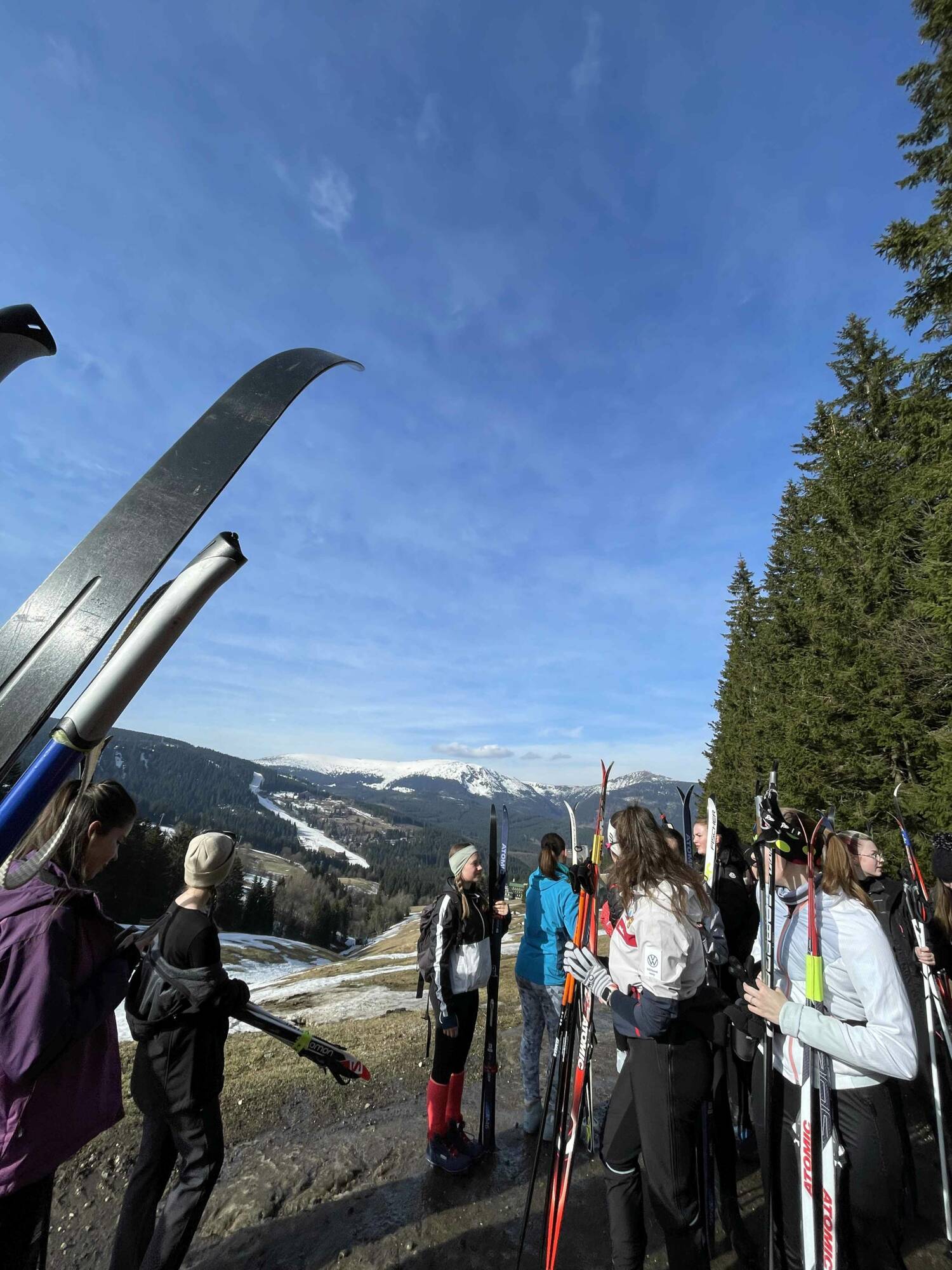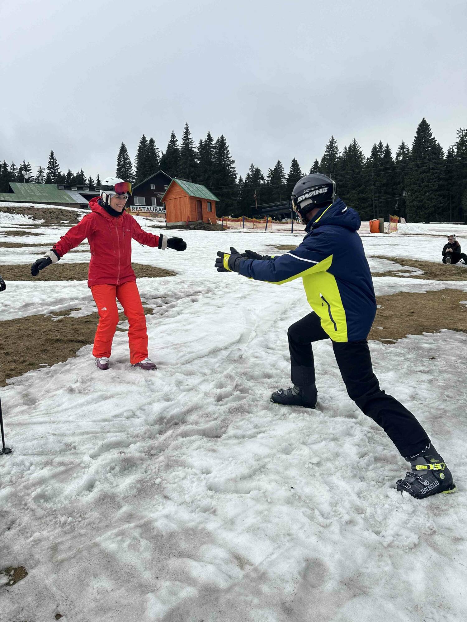 Původní plán byl dokonalý, na zápraží hotelu každý den nazout lyže a vyrazit na svah. Již cestou od autobusu jsme zjistili, že toto možné nebude. Nicméně samotné sjezdovky byly z 90% otevřené a i na běžky jsme našli dostatečně velké ostrovy sněhu.