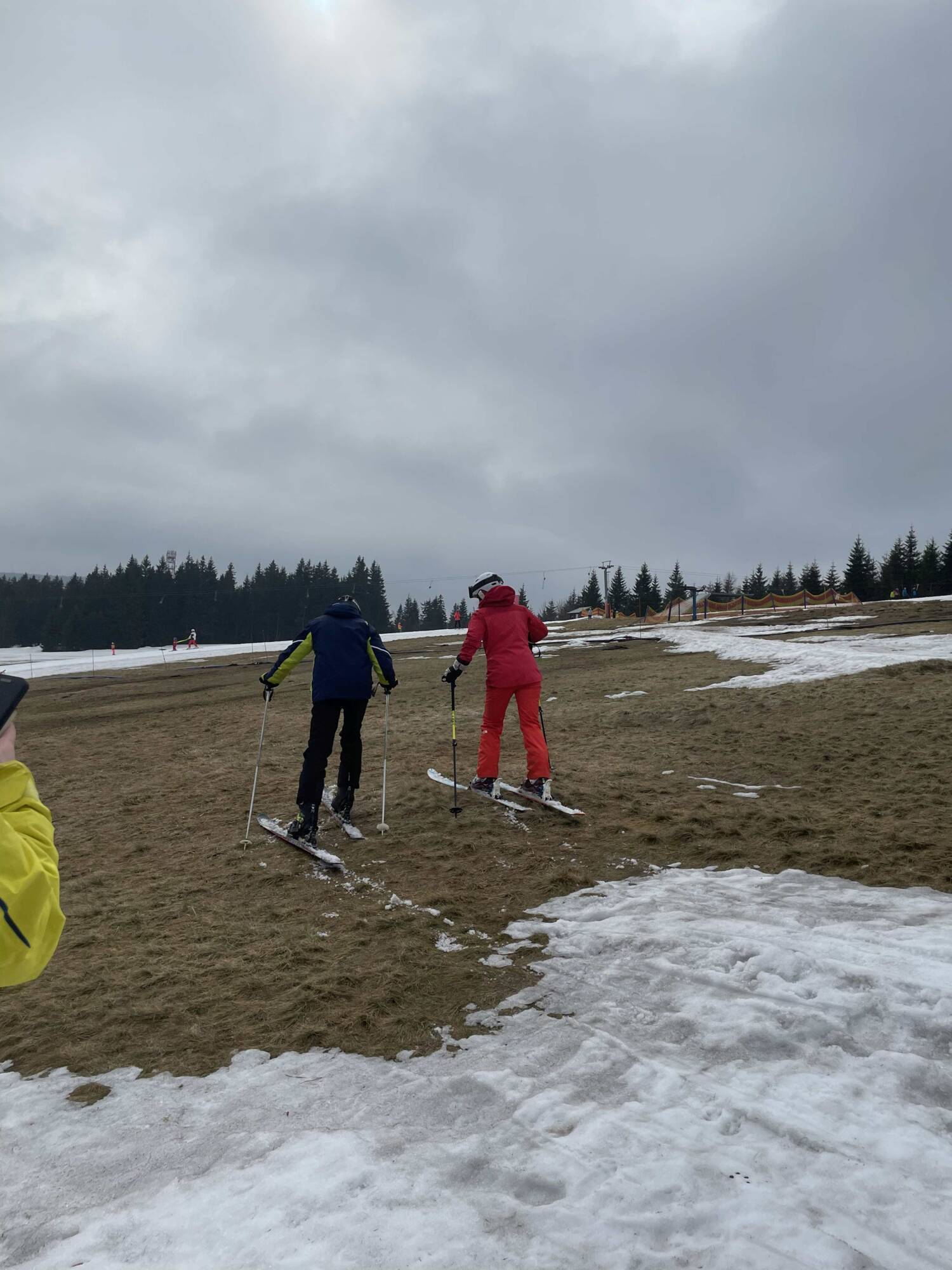 Původní plán byl dokonalý, na zápraží hotelu každý den nazout lyže a vyrazit na svah. Již cestou od autobusu jsme zjistili, že toto možné nebude. Nicméně samotné sjezdovky byly z 90% otevřené a i na běžky jsme našli dostatečně velké ostrovy sněhu.