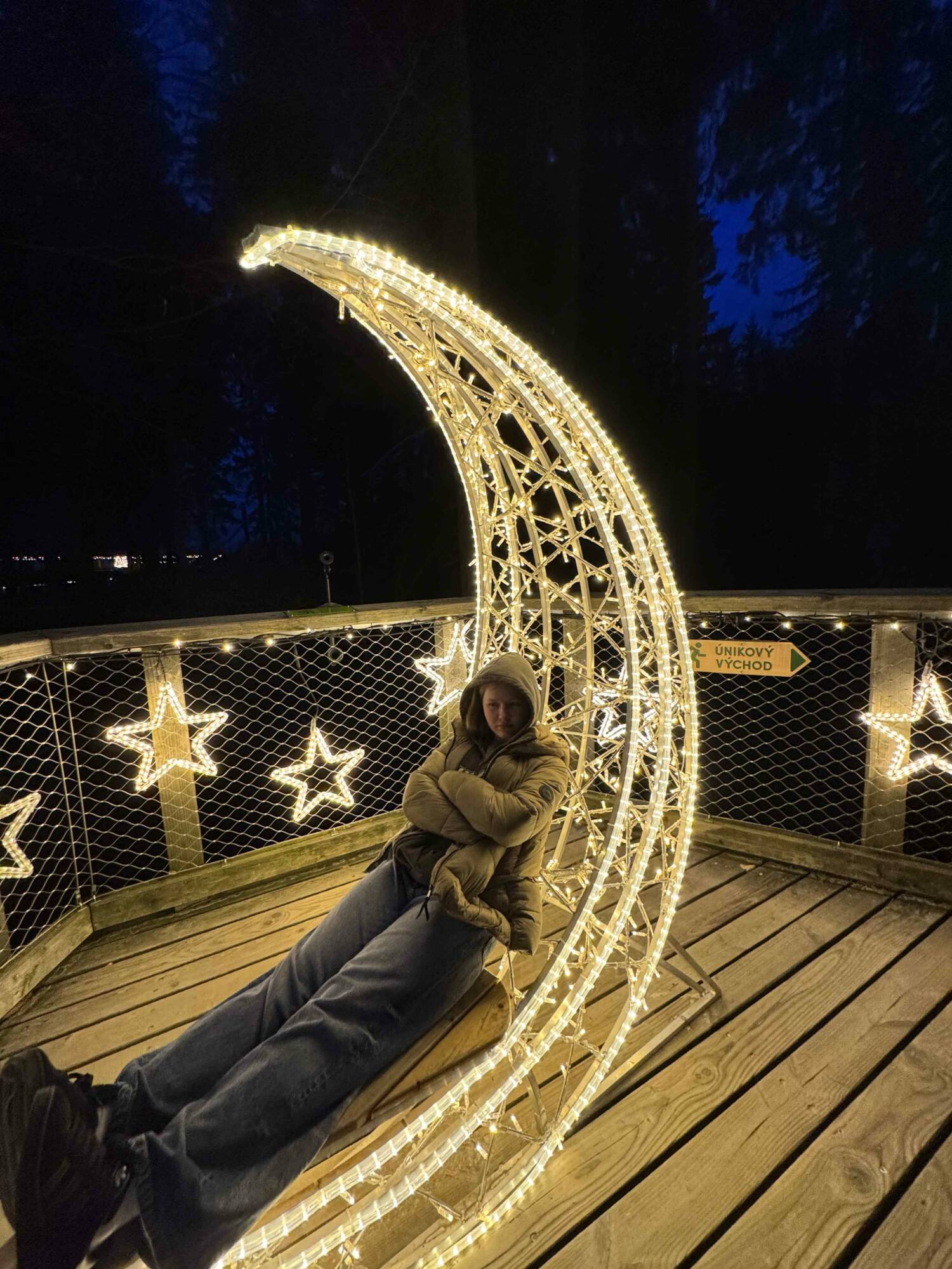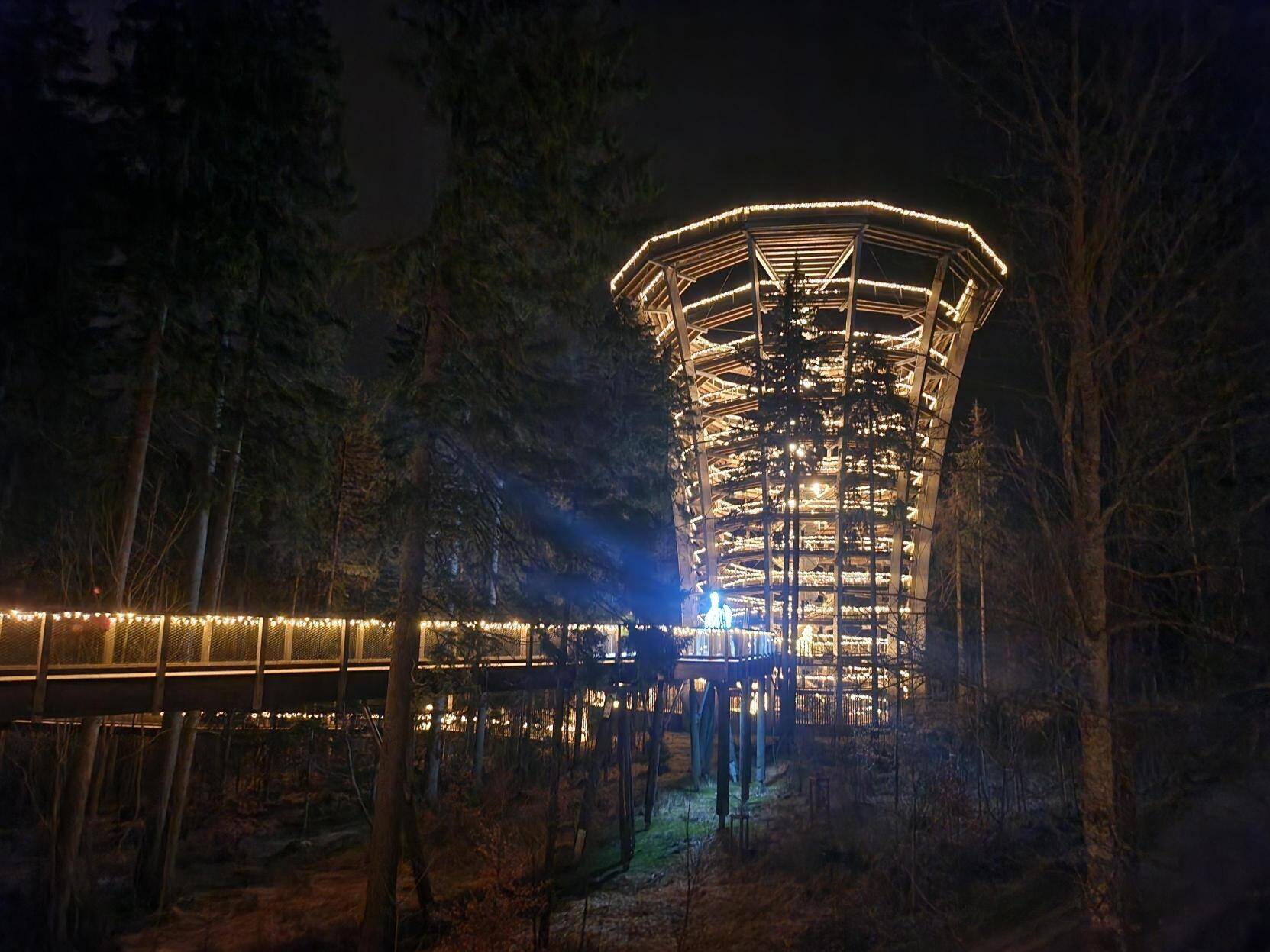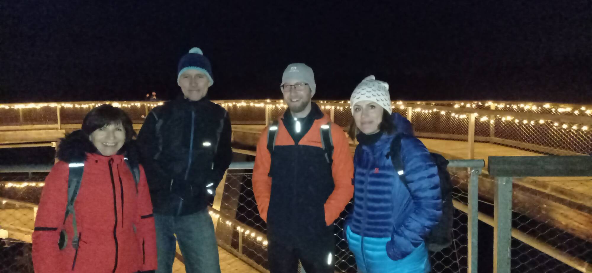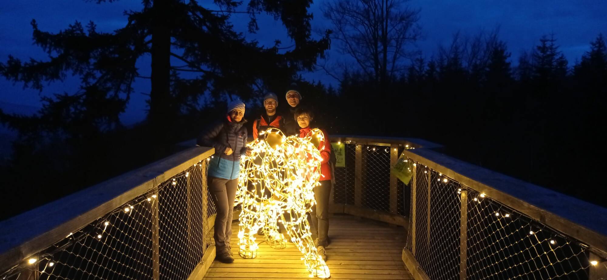 Jako další vrchol můžeme zařadit noční návštěvu stezky korunami stromů v Jánských Lázních. Připomínala návrat do období adventu. Celá stezka včetně 45 metrů vysoké věže svítila jako vánoční stromeček. Prohlídku jsme zakončili posezením v příjemné restauraci.