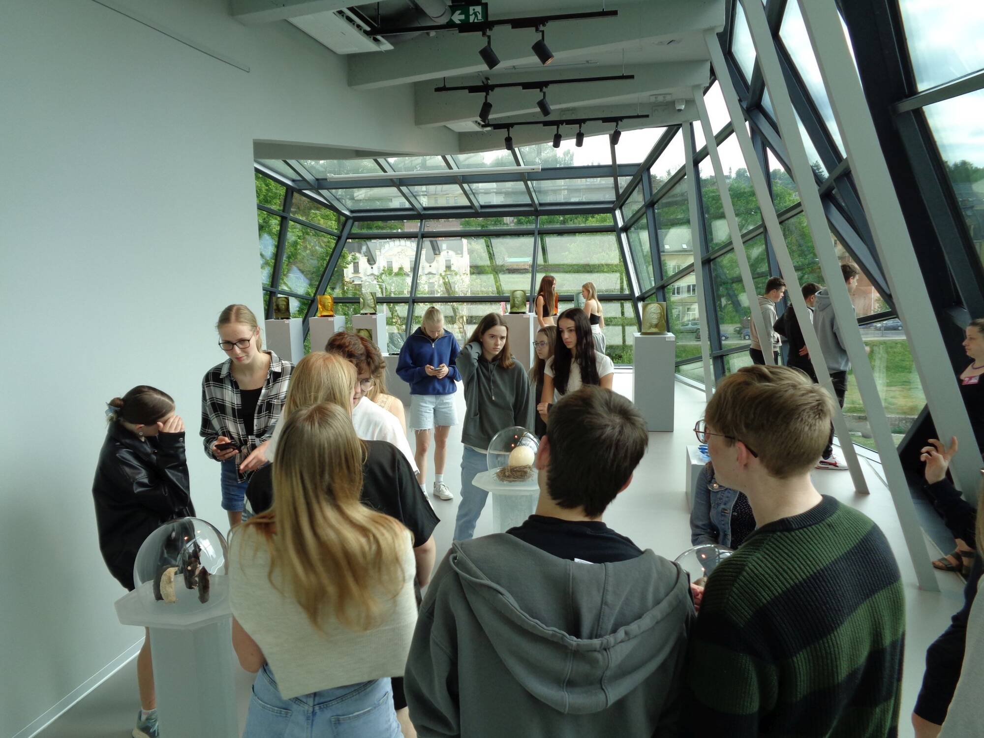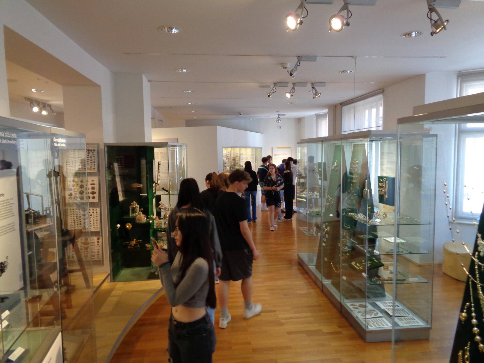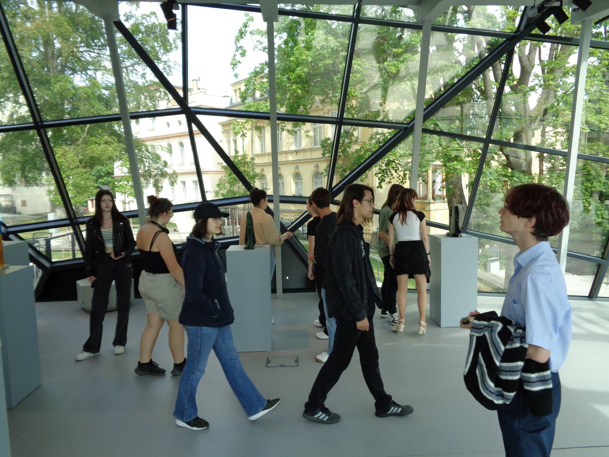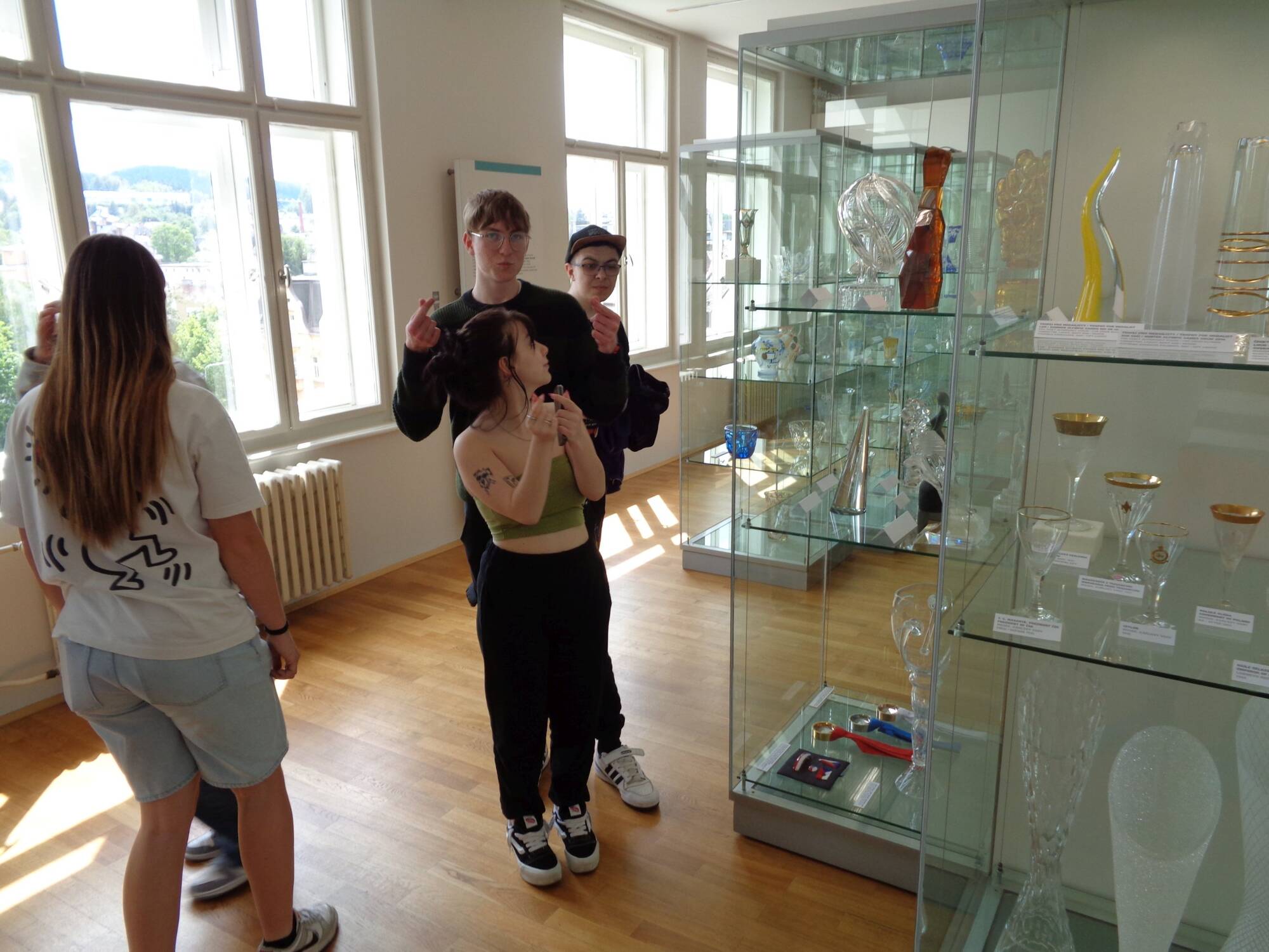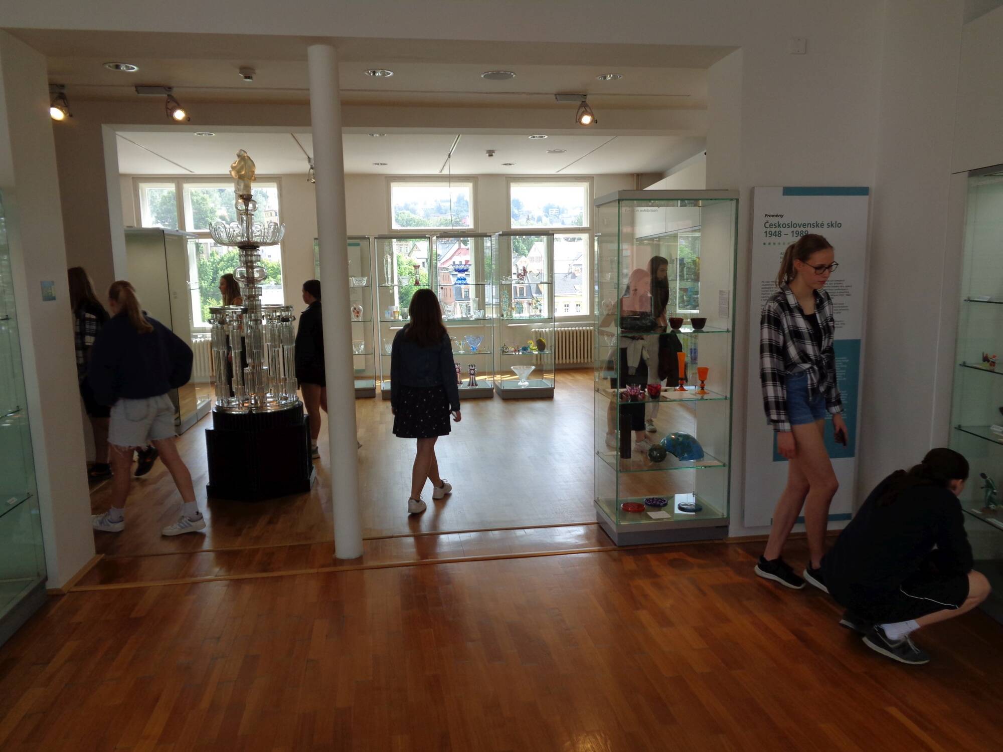 Žáci zhlédli stálé expozice muzea, Čarovnou zahradu – české sklo sedmi století, dále Nekonečný příběh bižuterie i nově otevřenou autorskou výstavu SOULAD, které dominuje umělecké sklo tří výrazných současných výtvarníků, a to Františka Janáka a jeho hostů Martiny Janákové a Aleny Matějky.