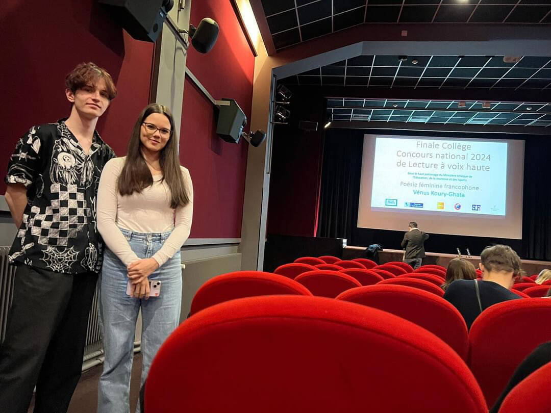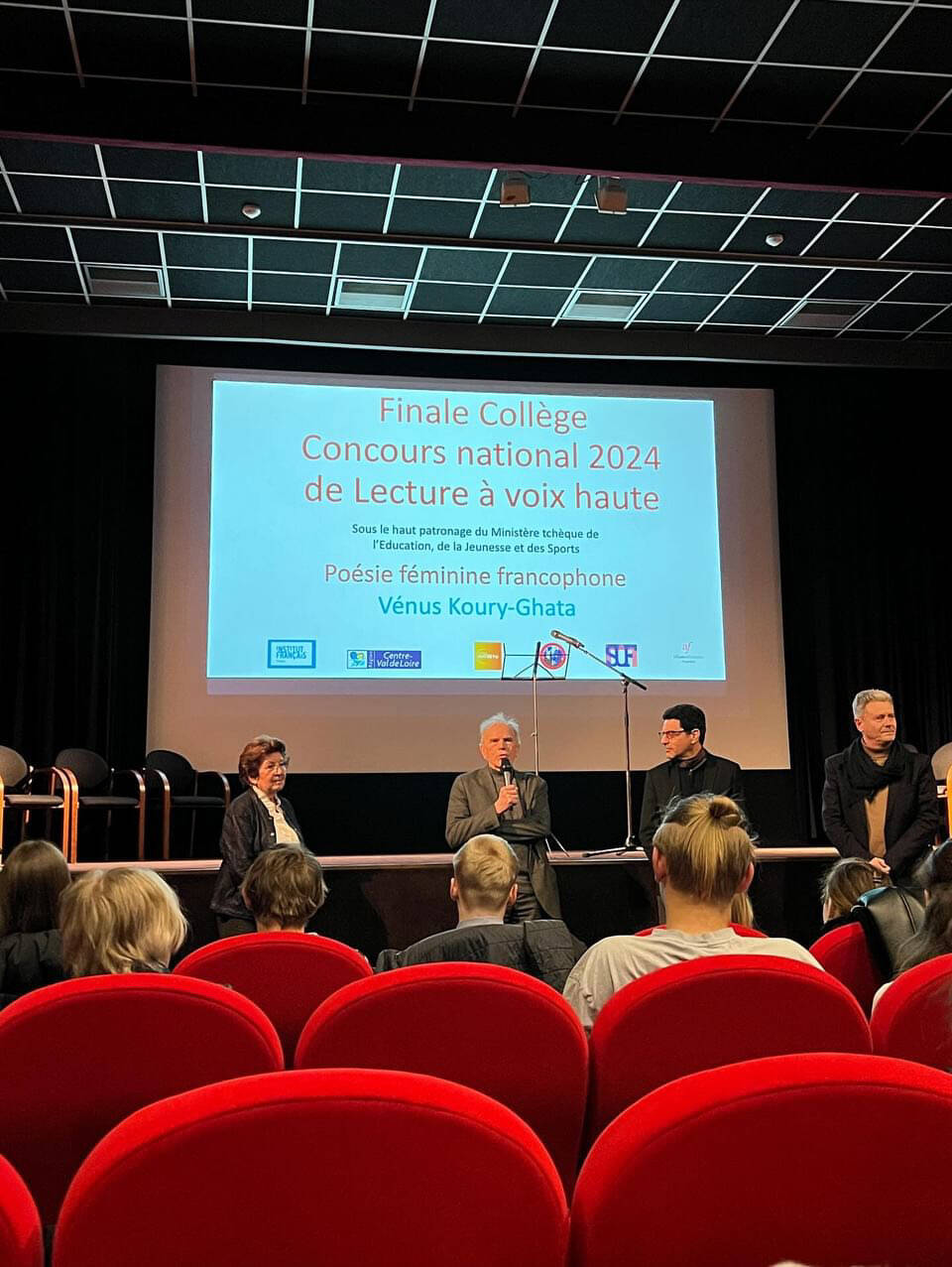 Dne 22.4.2024 se naše škola zúčastnila celostátního kola soutěže “Concours national 2024 de Lecture à voix haute”, neboli recitační soutěže a to ve francouzském jazyce. Ráno jsme se dopravili do Prahy a poté zamířili do Francouzského institutu, kde se celá soutěž odehrávala. Na programu toho bylo hodně, nejdříve jsme se rozdělili do dvou skupin, kdy první místa ze školních kol se připravovala na recitaci před publikem a ostatní měli různé workshopy,  například jak vystupovat na veřejnosti, jak se zbavit trémy apod. V aktivitách nemohly chybět jazykolamy, herectví a mnoho dalšího. Nejlepší věc ale byla samozřejmě ta, že jsme mluvili francouzsky, workshopy, debaty a vše ostatní organizovali především rodilí mluvčí francouzštiny, takže té nebylo málo!!