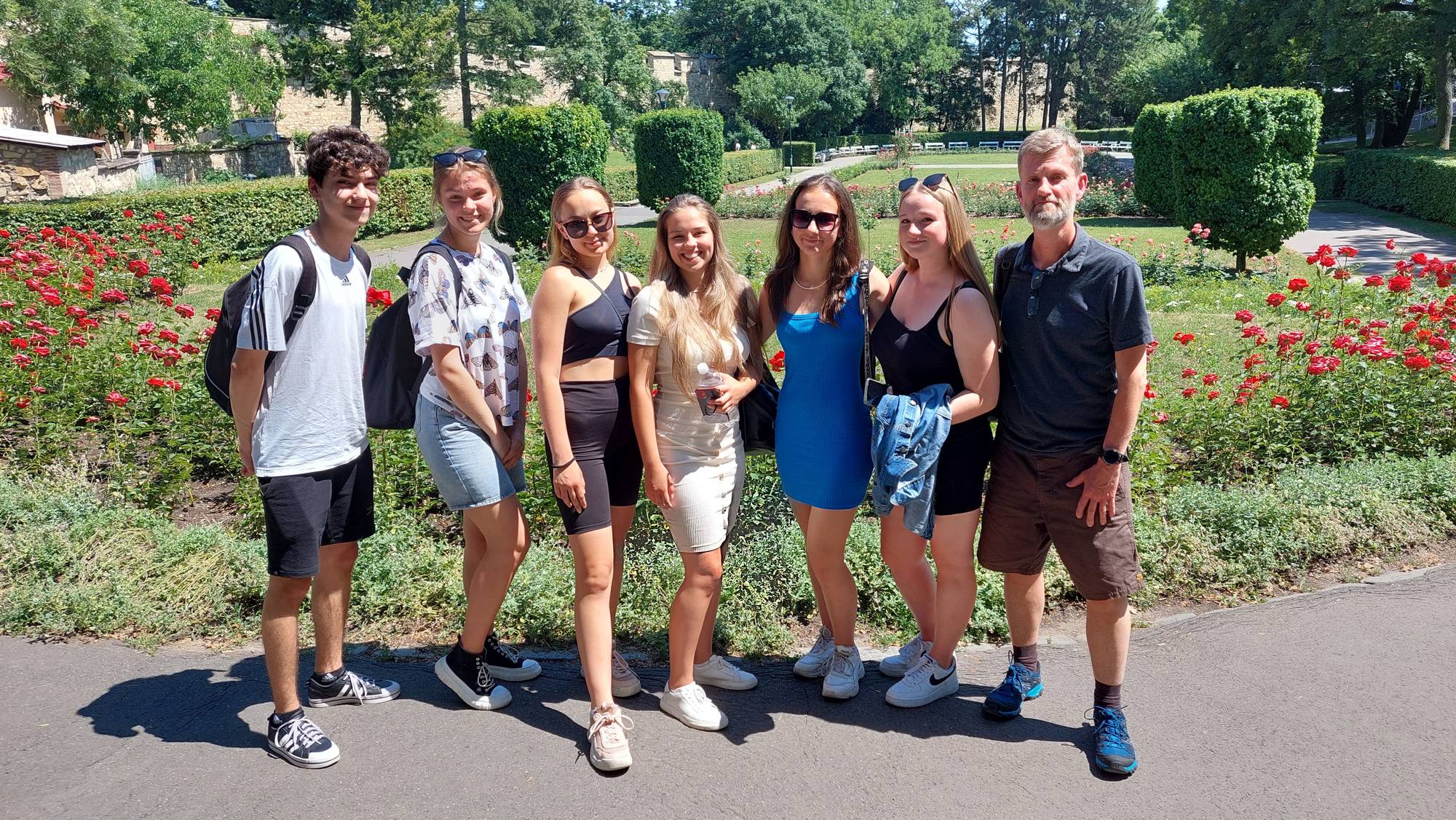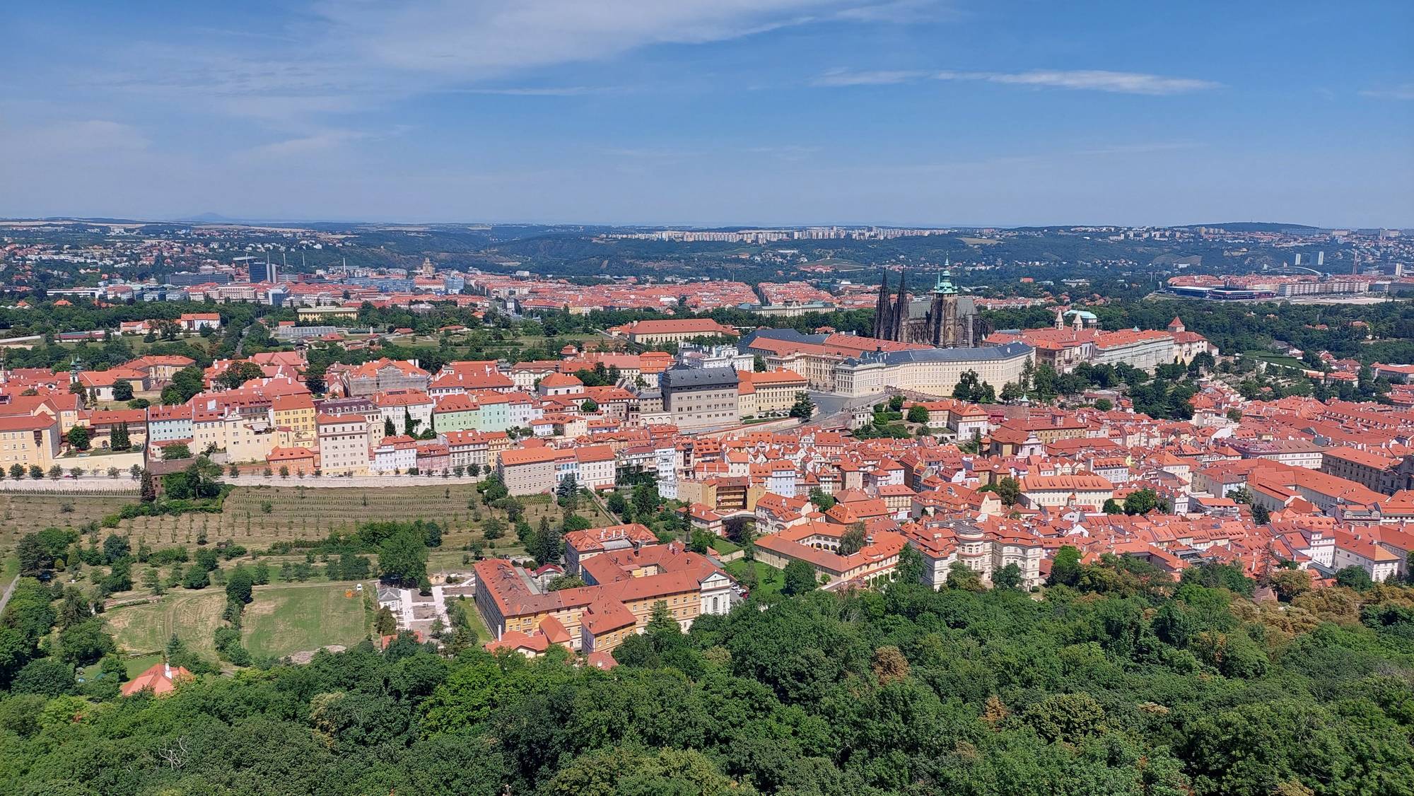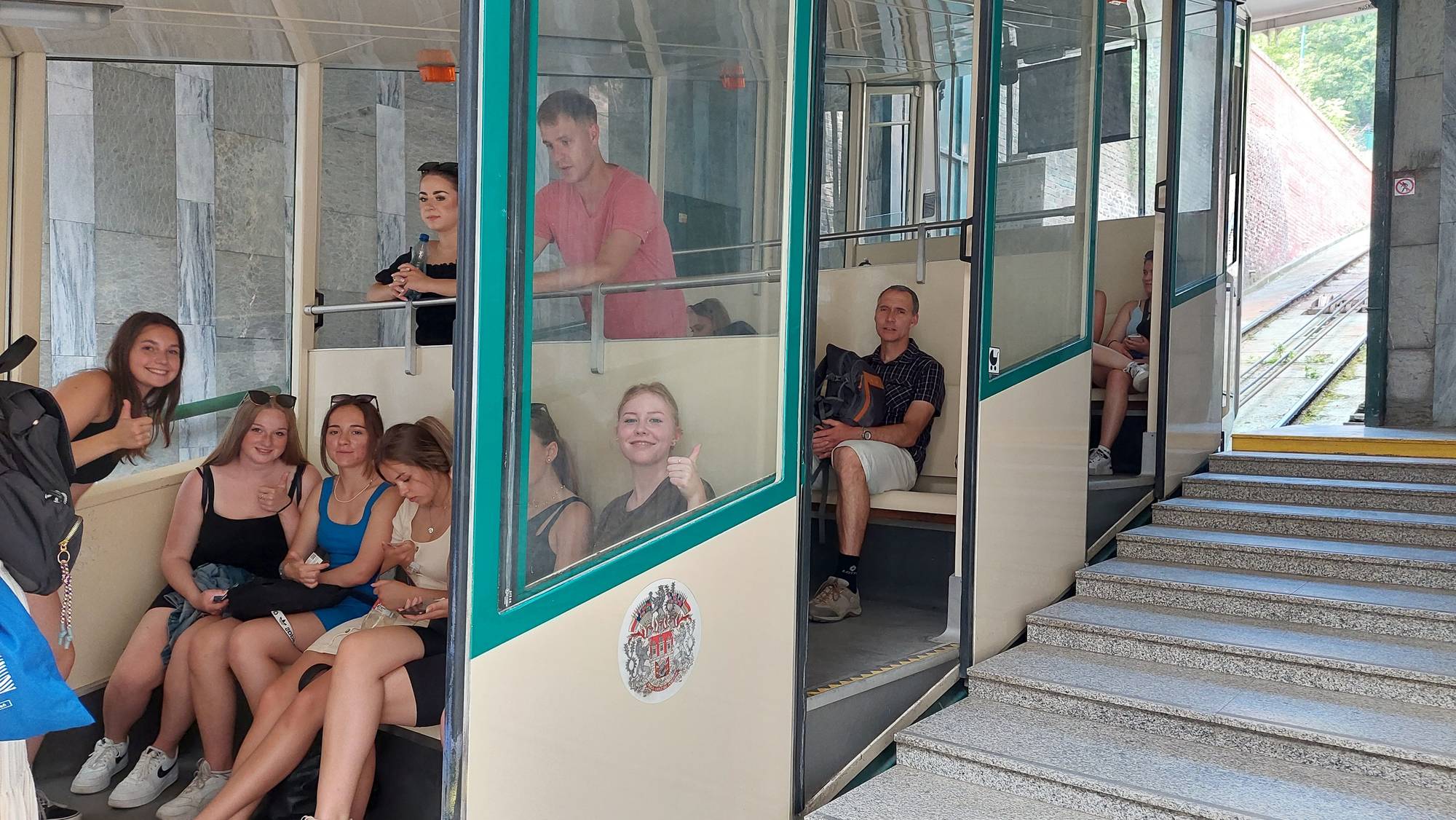Následoval výjezd lanovou dráhou na Petřín, návštěva zrcadlového bludiště a rozhledny a hodinový rozchod s odpočinkem v petřínských zahradách. Z důvodu úmorného vedra byla pro sestup k Vltavě využita opět lanová dráha. Po krátkém odpočinku na Střeleckém ostrově s krásným výhledem na Národní divadlo, se žáci pozastavili u pamětní desky 17.11.1989 na Národní třídě, a i když krátký, ale jistě vydařený výlet, byl u konce.