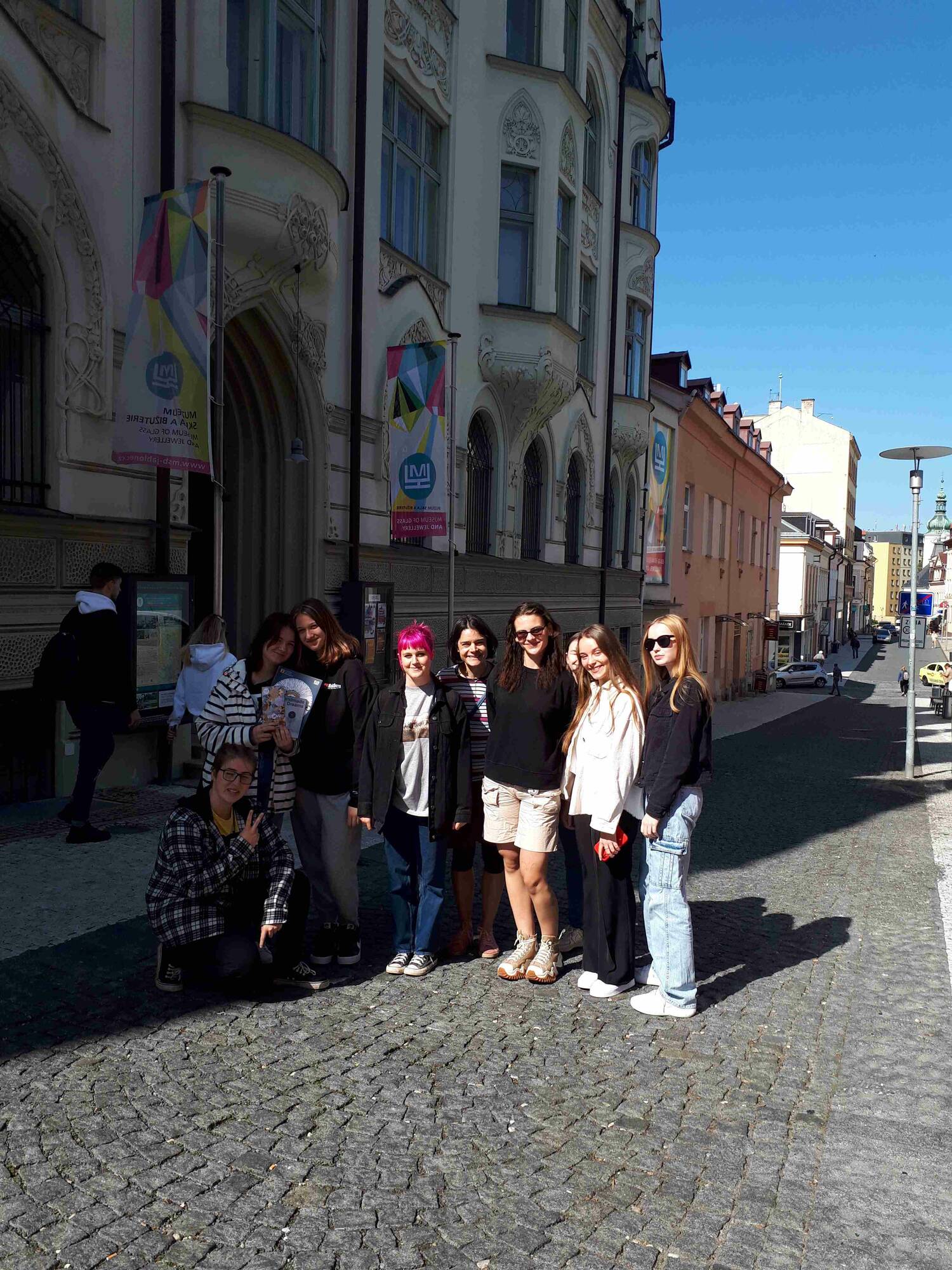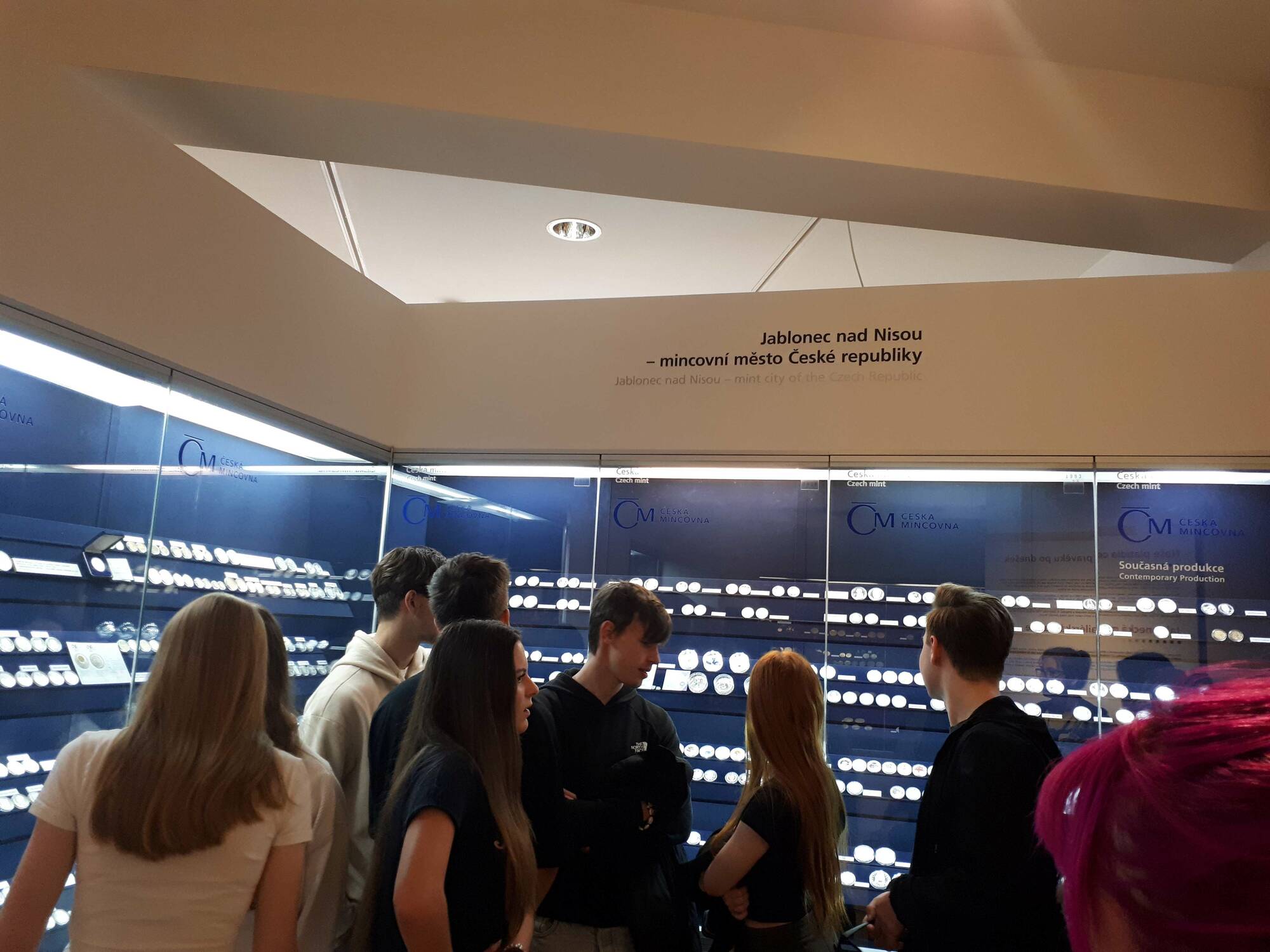 Pár dnů před odletem, odjezdem nebo nástupem na povinnou praxi se polovina třídy O3.B vypravila na exkurzi do Muzea skla a bižuterie. Muzeum se nachází v podstatě „za rohem“ a představuje tedy nenáročný, zároveň velmi přínosný a zajímavý způsob, jak si zpestřit výuku. Místo dvou vyučovacích hodin v lavicích při (jinak velmi atraktivním) předmětu Ekonomika zahraničního obchodu tedy žáci po tento čas sledovali poutavý výklad muzejní kurátorky.