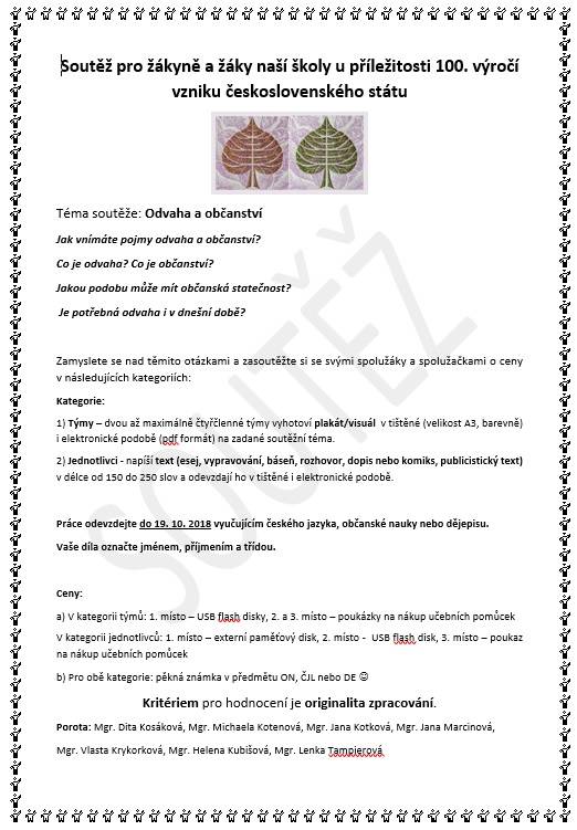 Soutěž pro žákyně a žáky naší školy u příležitosti 100. výročí vzniku československého státu