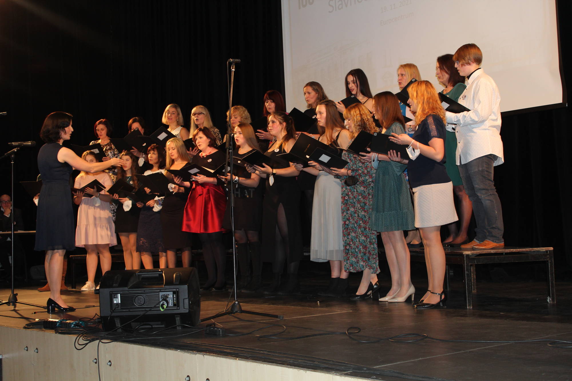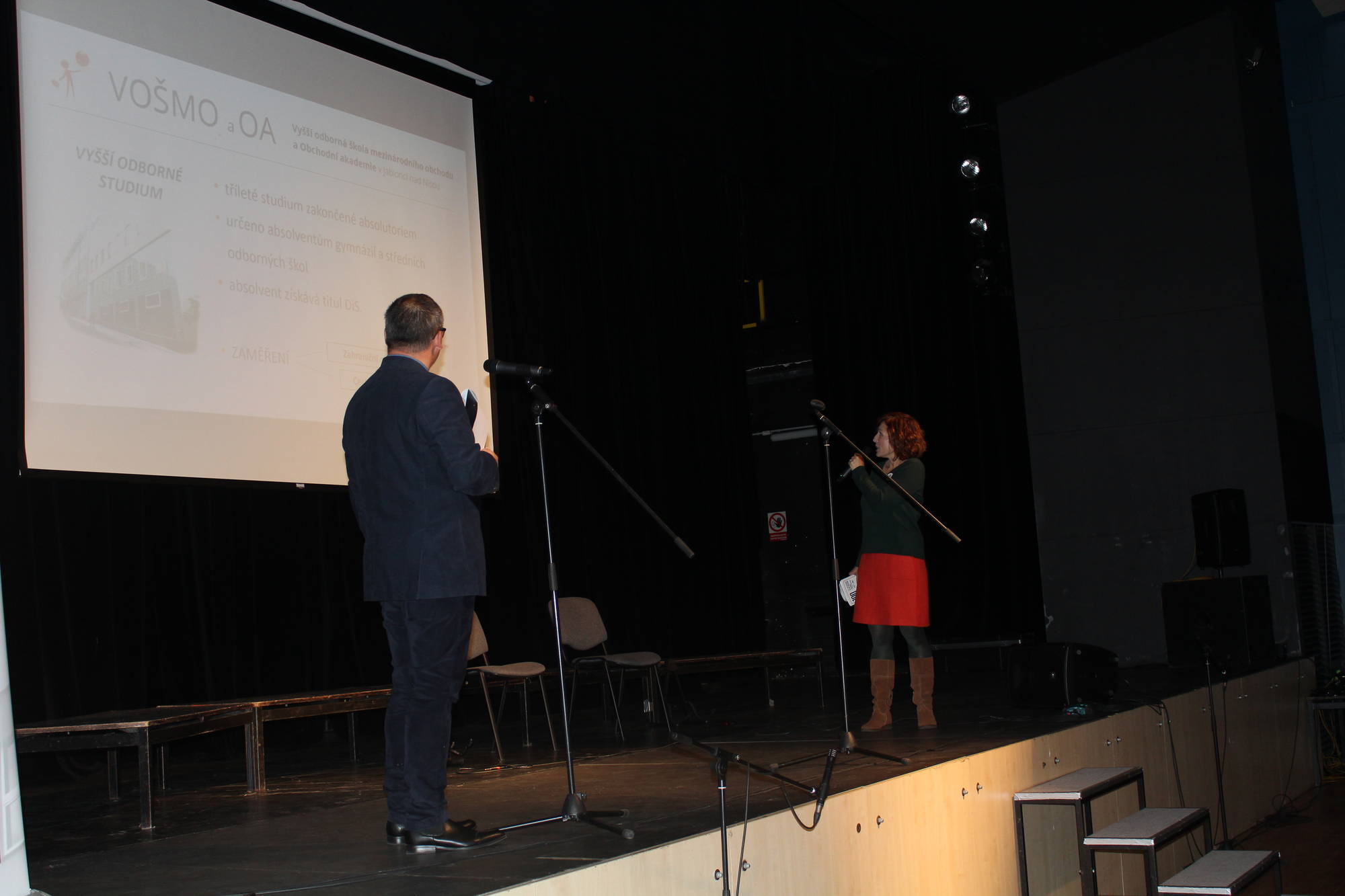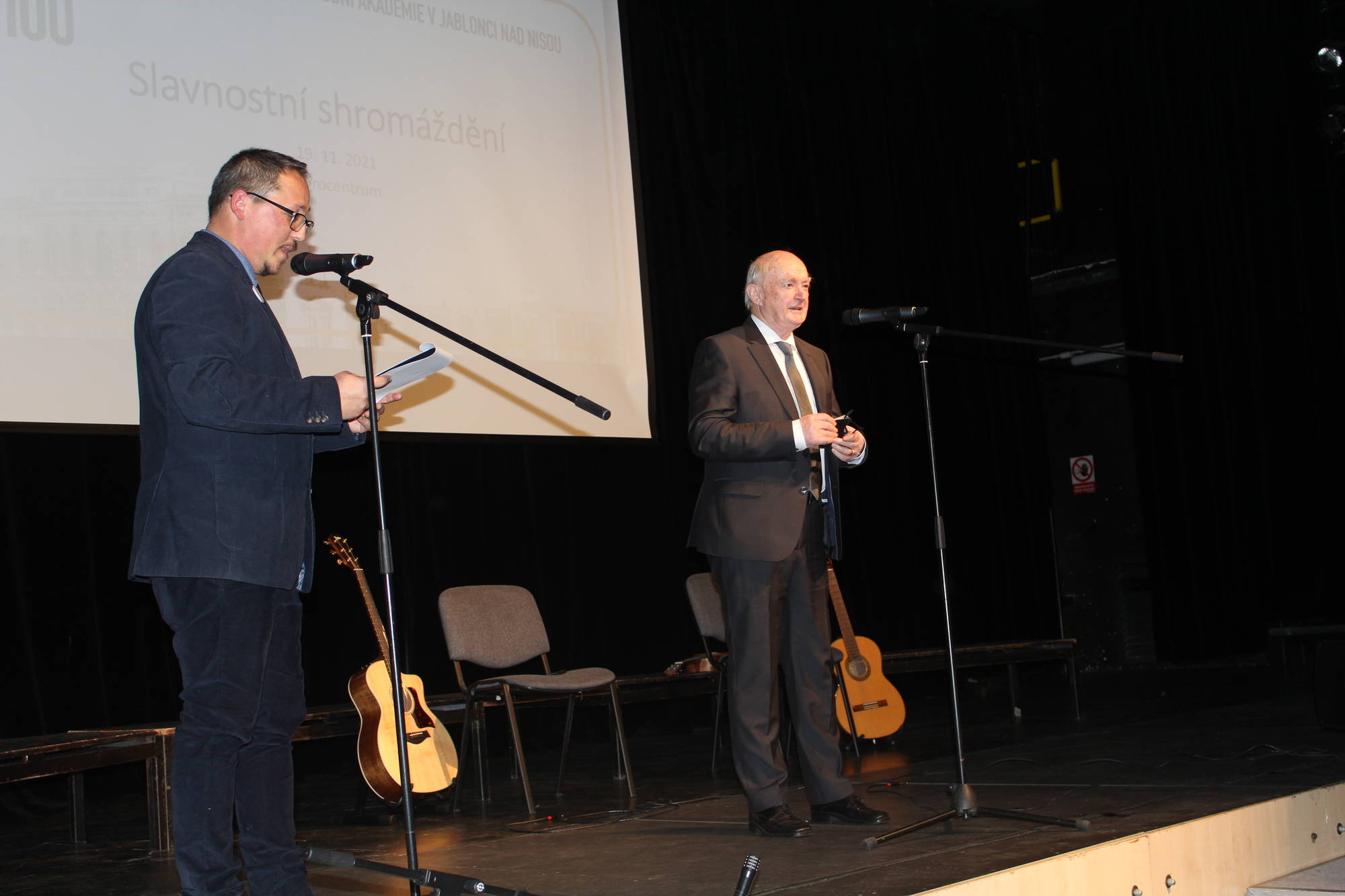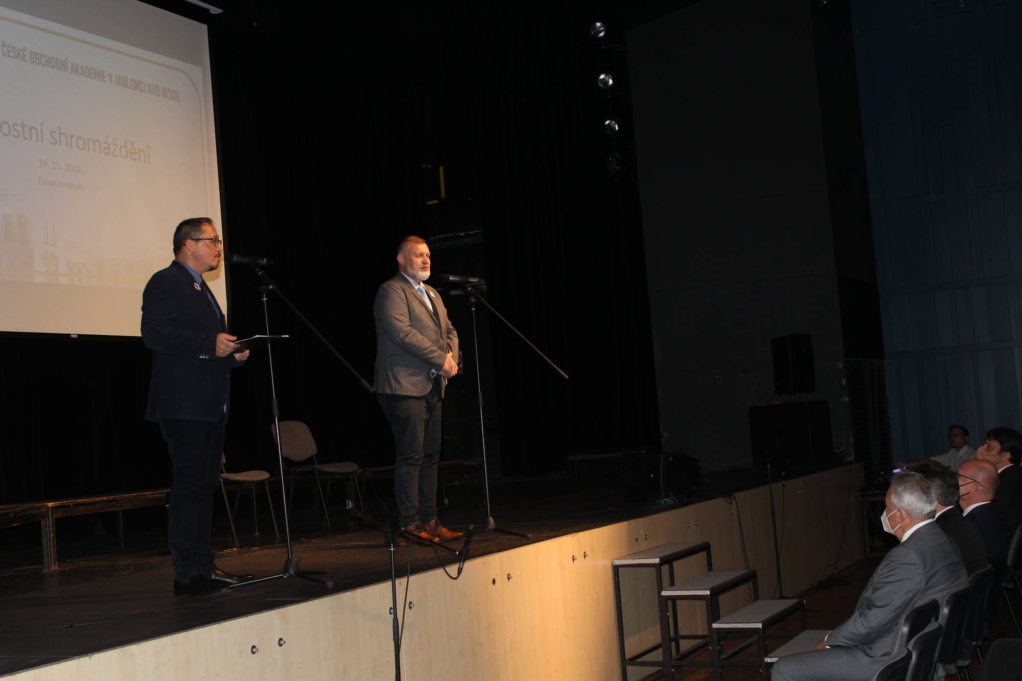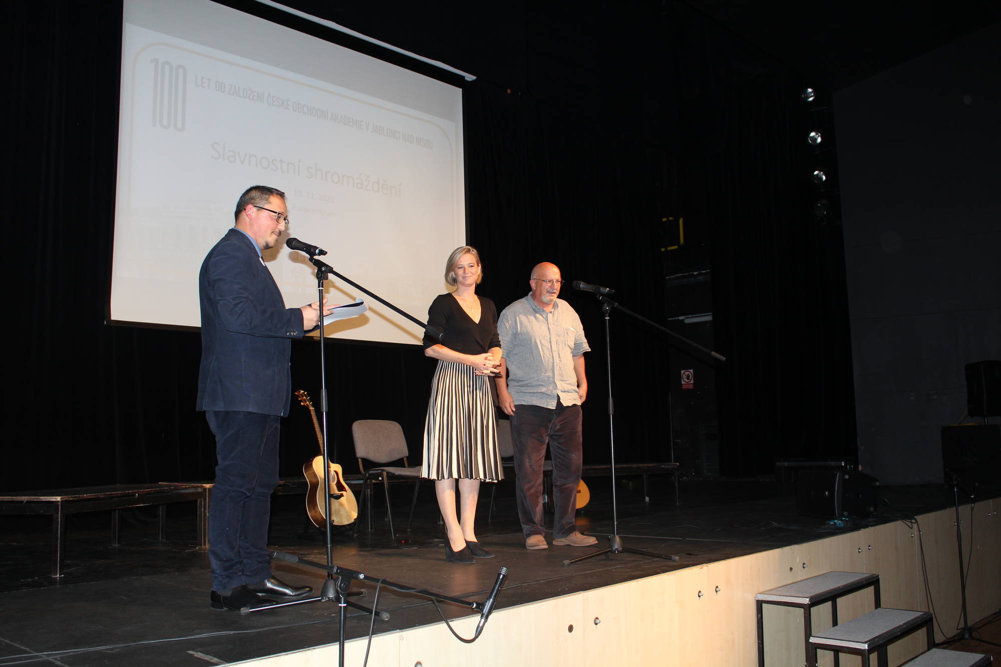 V 18:00 zazvonilo v Eurocentru a moderátor večera, Libor Tampier, vyzval přítomné diváky, aby povstali jako na začátku vyučovací hodiny. S úsměvem a v příjemné atmosféře se tak mohl odehrát program připravený pro Slavnostní shromáždění. V úvodu večera promluvil ředitel školy Mgr. Jiří Kabelka, po něm hovořil náměstek pro školství Ing. Dan Ramzer a nechyběl také Mgr. Jiří Čeřovský jako zástupce Města Jablonec nad Nisou. Nejprve historii školy připomenul PhDr. Lubor Lacina ze Severočeského muzea v Liberci a během následujících minut mohli diváci vidět film o škole a vyslechnout si rozhovory s absolventy: panem Ing. Otakarem Havlem, generálním ředitelem Jablonex, a. s., advokátem JUDr. Zdeňkem Holáskem, Ing. Lindou Koullias, contracting manager Greece pro společnost REWE Group (vlastníci CK Fischer a Exim tours), pracovnicí Mezinárodního sekretariátu NATO v Bruselu Marcelou Zelníčkovou, prof. Ing. Miroslavem Žižkou Ph.D., prorektorem Technické univerzity v Liberci a s bývalou vyučující cizích jazyků Mgr. Jiřinou Zahradníkovou, PhD. O hudební vystoupení se postaraly sestry Bělíkovy ze skupiny „Sestrogen“ a na závěr vystoupil školní pěvecký sbor „Sbor jedné písně“, který zazpíval studentskou hymnu Gudeamus Igitur.