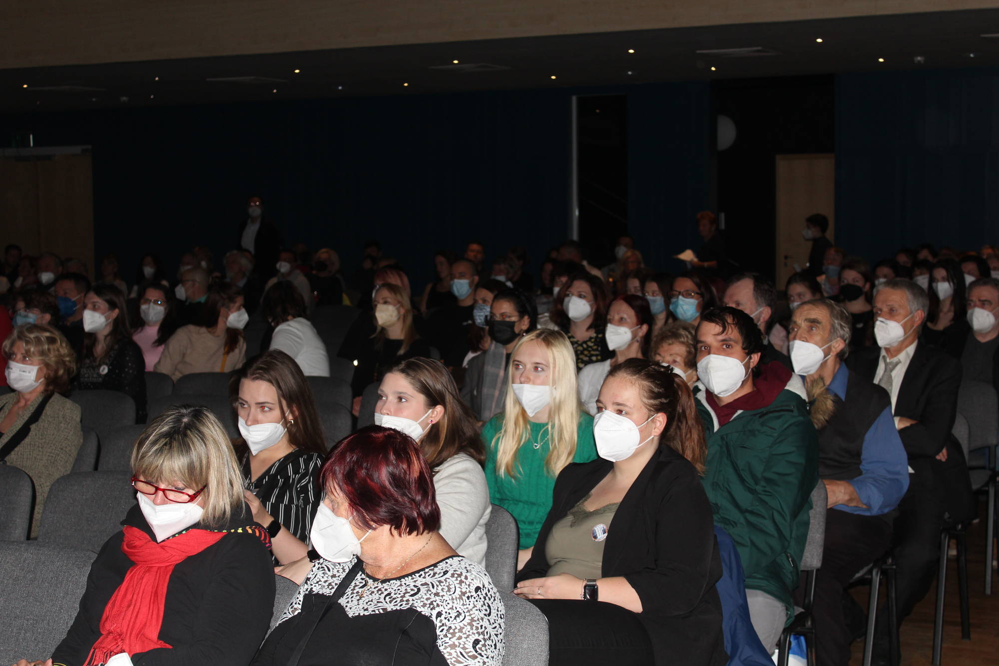 V 21:00 se většina diváků přesunula před budovu školy, kde spolu s dalšími diváky z řad veřejnosti zhlédli velkoplošnou projekci „Škola v obrazech“, která mapovala historii školy. Ještě jednou děkujeme sponzorům, kteří nám darovali finanční prostředky na uskutečnění této akce a institucím, které pomohly s realizací večerního videomappingu.