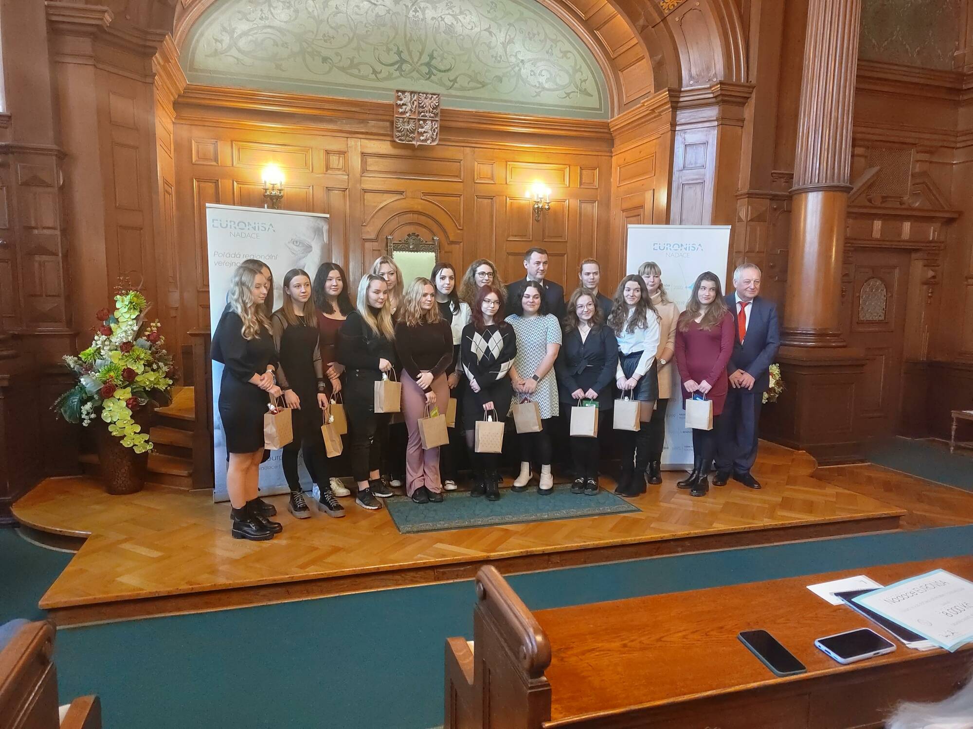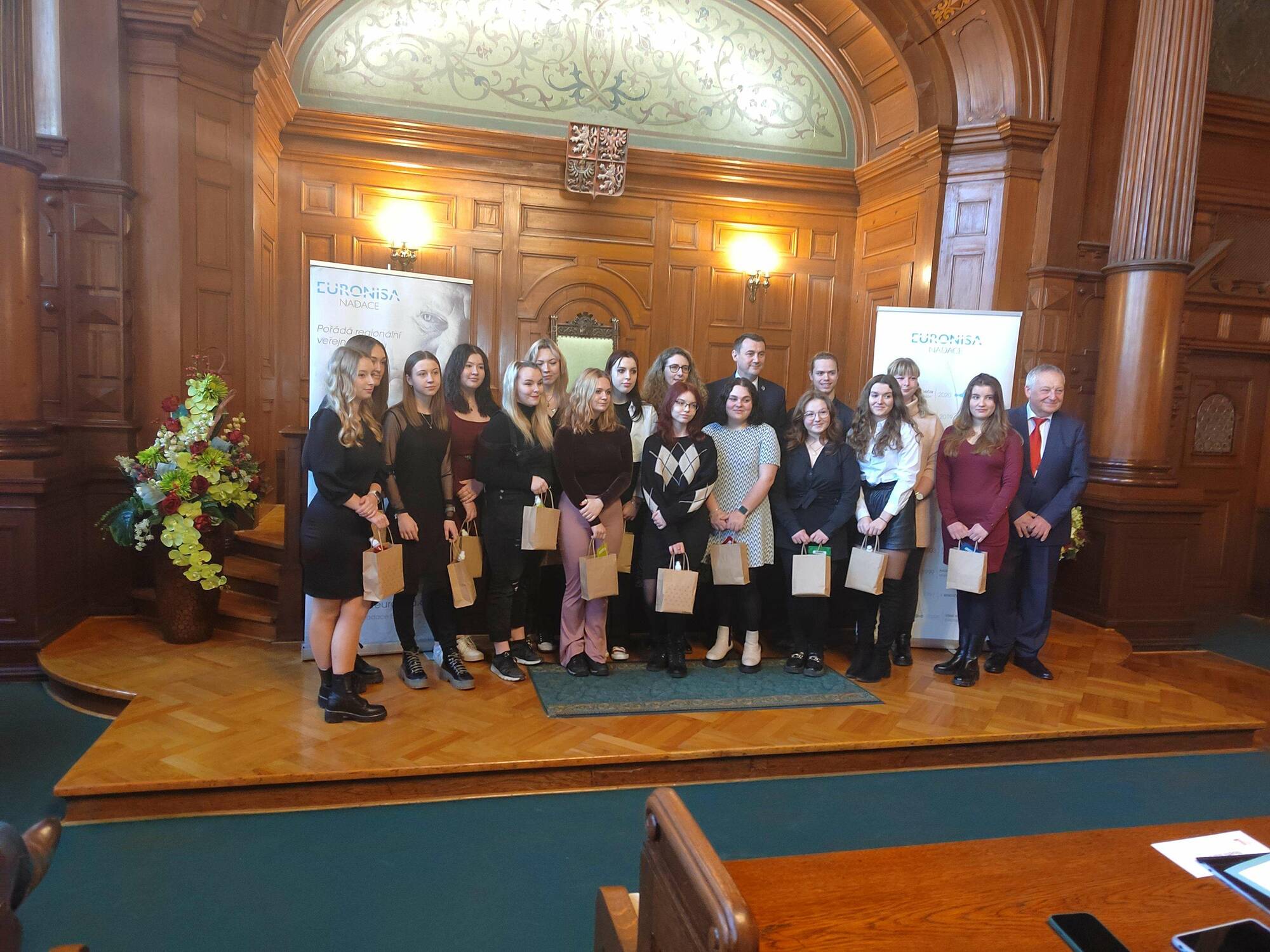 Dne 28.2. 2023 jsme se zúčastnily slavnostního předání výtěžku 19. a 20. ročníku veřejné sbírky „Pozvedněte slabé!“. Při této příležitosti se zástupcům podpořených organizací předaly nasbírané peníze, kde jsme i my jako škola také pomohli prodejem drobných předmětů v ulicích Jablonce na Nisou. Předávání se konalo v obřadní síni v Liberecké radnice. Dalším programem byla prohlídka, při které jsme měly možnost nahlédnout do kanceláře primátora a vyfotit se v jeho křesle. Celý den jsme si velmi užily a jsme rády za tuto příležitost.