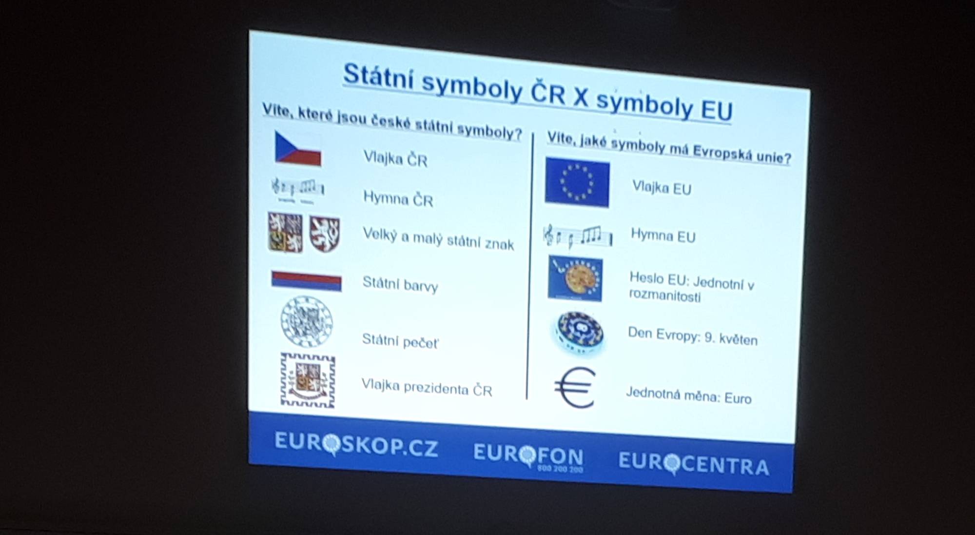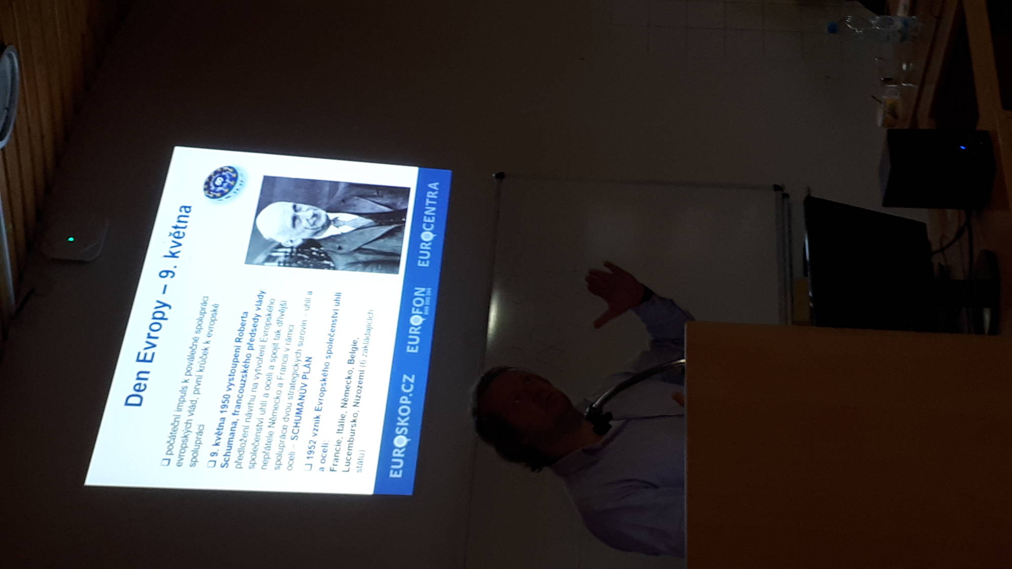 V pondělí 25. listopadu byl hostem na naší škole pan Martin Fišer z Eurocentra v Liberci, který žákům třetích ročníků OA přednášel o Evropské unii. Jeho povídání a promítání o historii této instituce i aktuálním dění v „osmadvacítce“ bylo velmi zajímavé a poutavé. Bylo vidět, že pan Fišer nejenže dané problematice dobře rozumí, ale navíc ji i umí studentům předat pro ně velmi přátelskou formou. Když navíc svou přednášku zpestřil i házením bonbonů za aktivitu a úkoly, které měli studenti plnit pomocí svých chytrých telefonů, měl u žáků vyhráno!