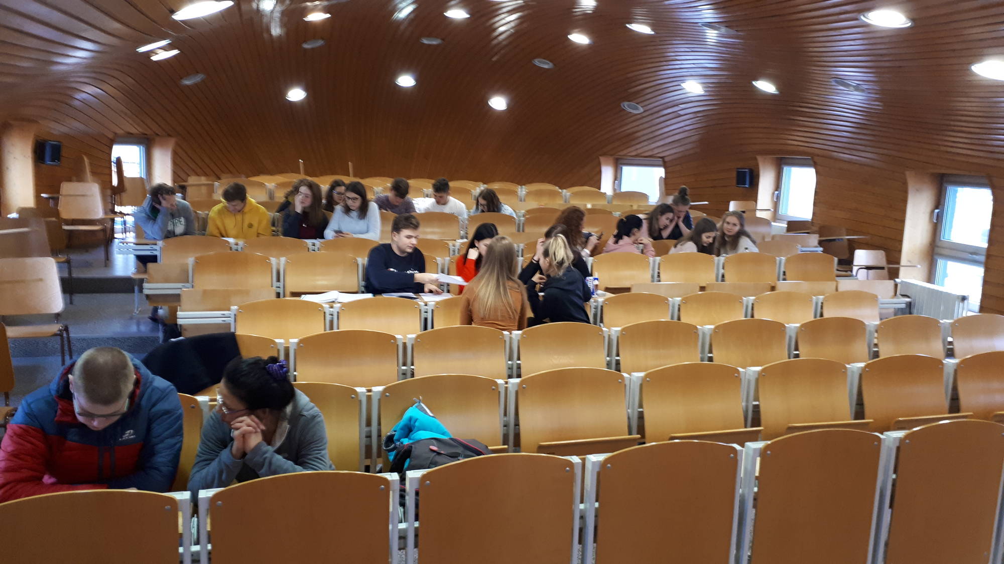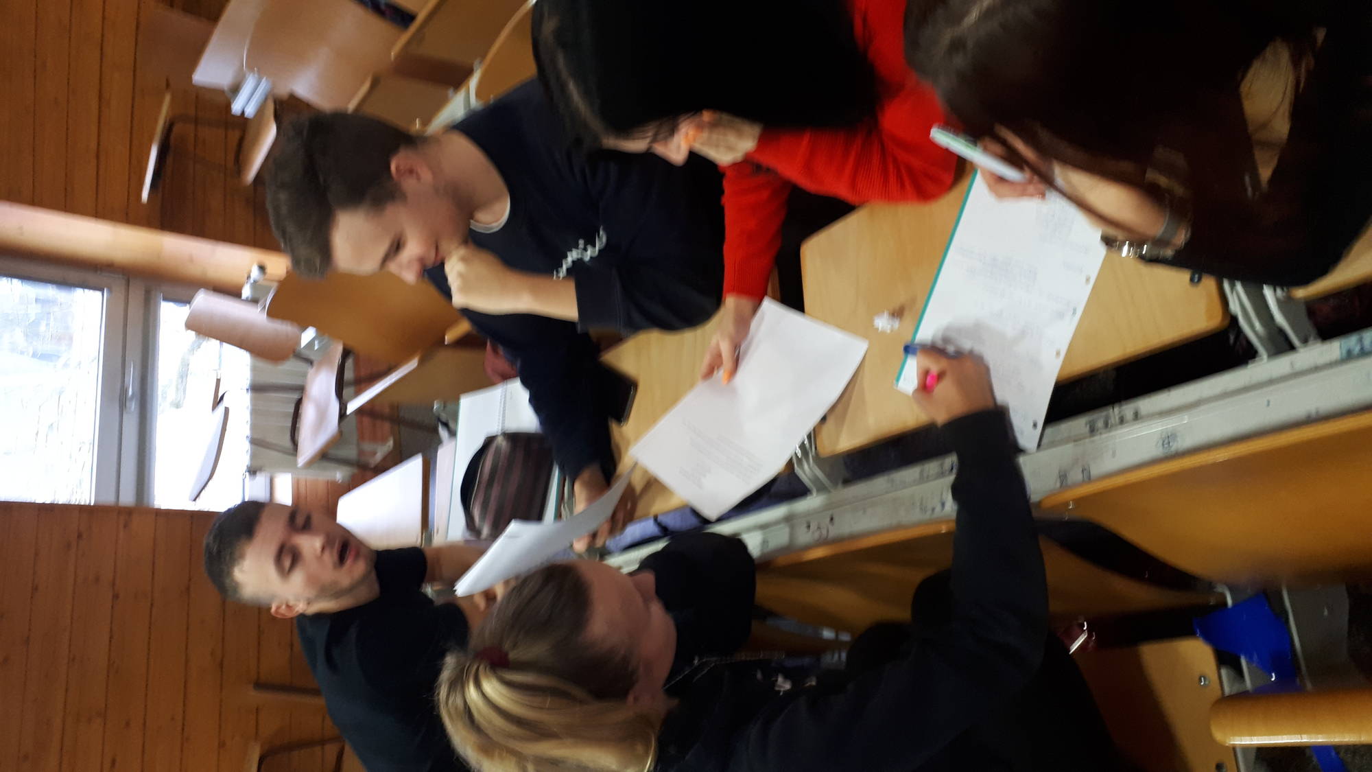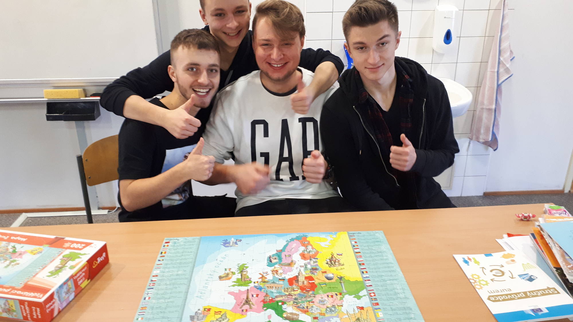 Projektový den ale přednáškou nekončil, naopak! Po pauze následovala praktická část, kdy byla řada na samotných studentech, aby informace, které se dozvěděli, zkusili ve skupinách zpracovat, znovu o nich popřemýšlet a zasadit je do širších souvislostí. Žáci byli rozděleni do 5 skupin, které se během dvou vyučovacích hodin prostřídaly na pěti stanovištích. Tam na ně čekaly nejrůznější úkoly: od správného přiřazení důležitých událostí z historie EU k datům, přes kvíz o eurozóně až po skládání „evropských“ puzzle... Troufám si tvrdit, že evropský projektový den si užili všichni zúčastnění!