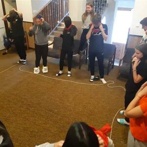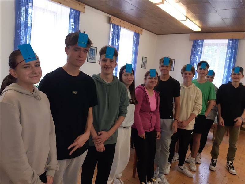 Poslední dopoledne úvodního kurzu nás navštívila pí. Jančusová, která měla připravené hry pro zapojení mozku. Na závěr jsme si udělali několik crazy fotek.