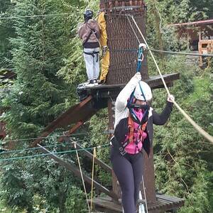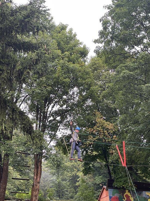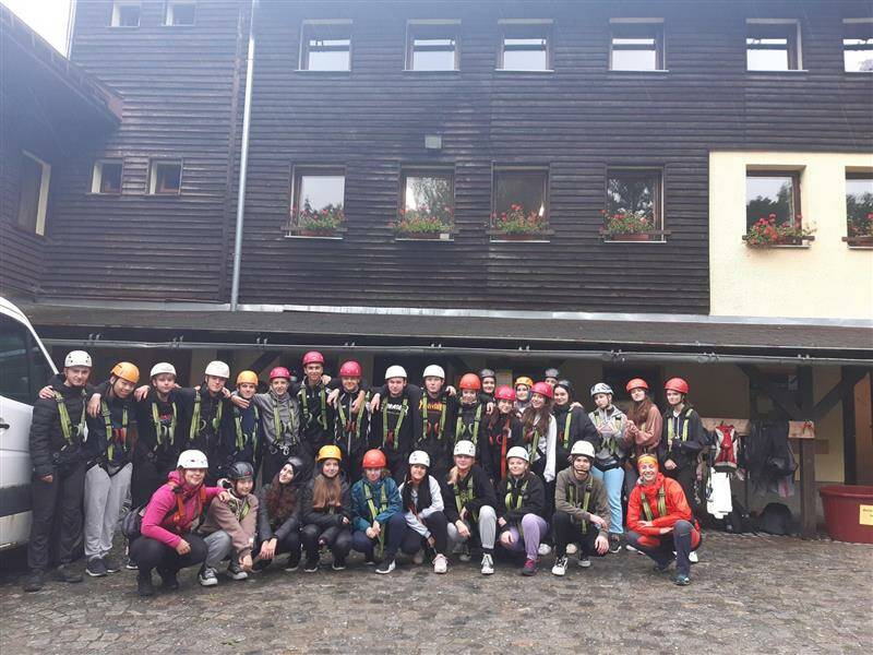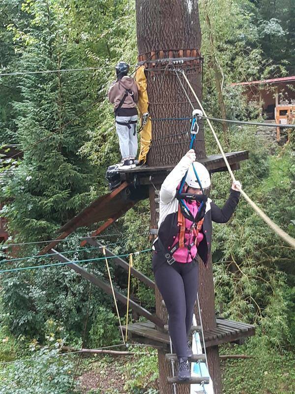 Druhý den jsme vyrazili do lanového parku, kde nás po celou dobu provázel déšť. Tento program si pro nás připravila pí. Jarolímová. Dopoledne by šlo definovat jako „Voda je moje druhé jméno“. Po obědě přijela pí. psycholožka Schorschová. Hráli jsme hry na poznávání, které nám daly možnost se vzájemně více poznat. Zjistili jsme, kdo se bojí pavouků a nebo kdo naopak zbožňuje houby (takových bylo málo). Večer jsme hráli schovávanou v naprosté tmě. Vzhledem k „uklizeným“ pokojům jsme nacházeli na zemi spoustu ponožek, namísto svých spolužáků. Na závěr večera se k nám připojila pí. Rieger, která nám s pí. Hurtovou předvedla mistrovský kurz tance na písně "Borovička" a “Freestyler“.