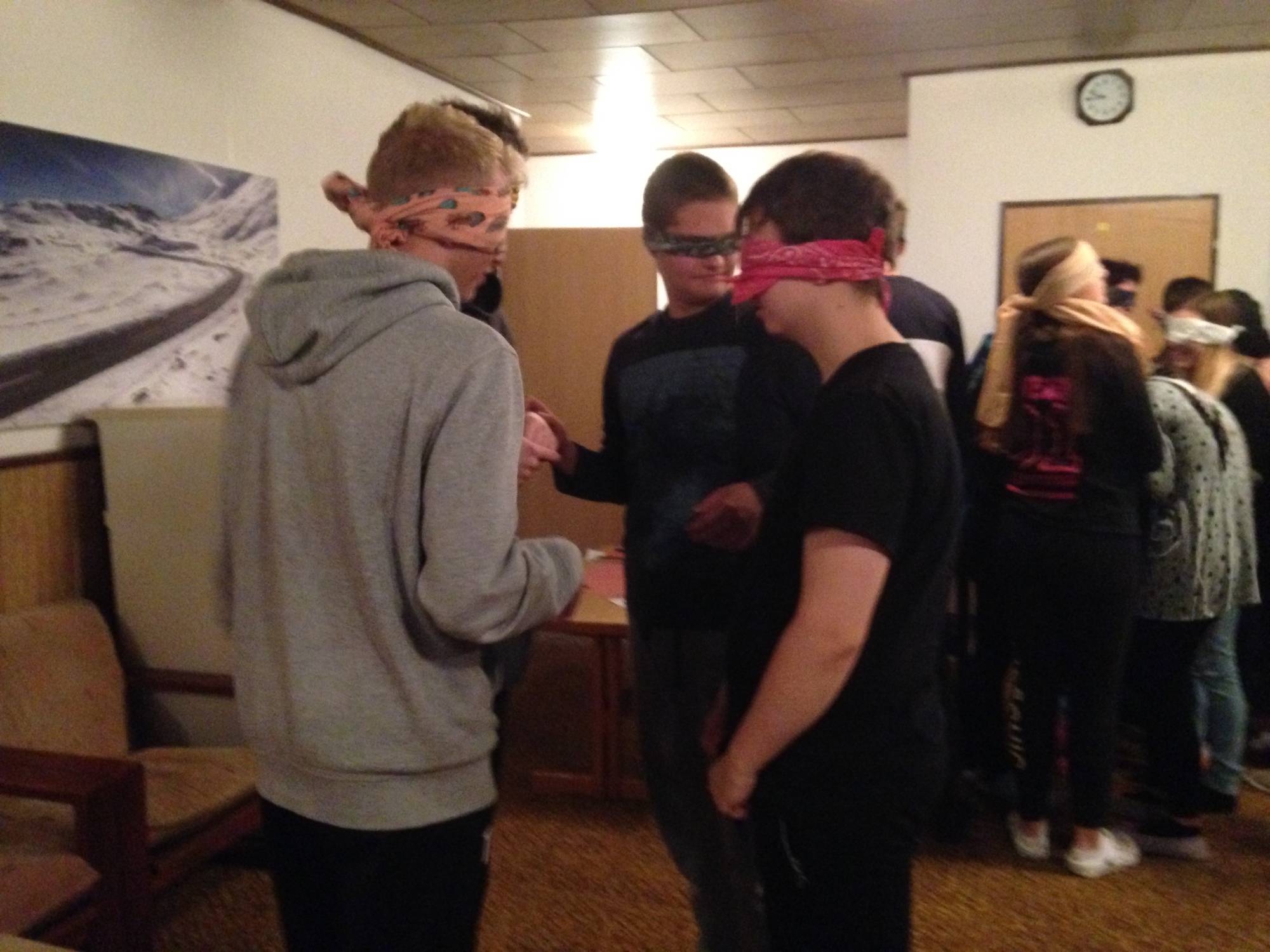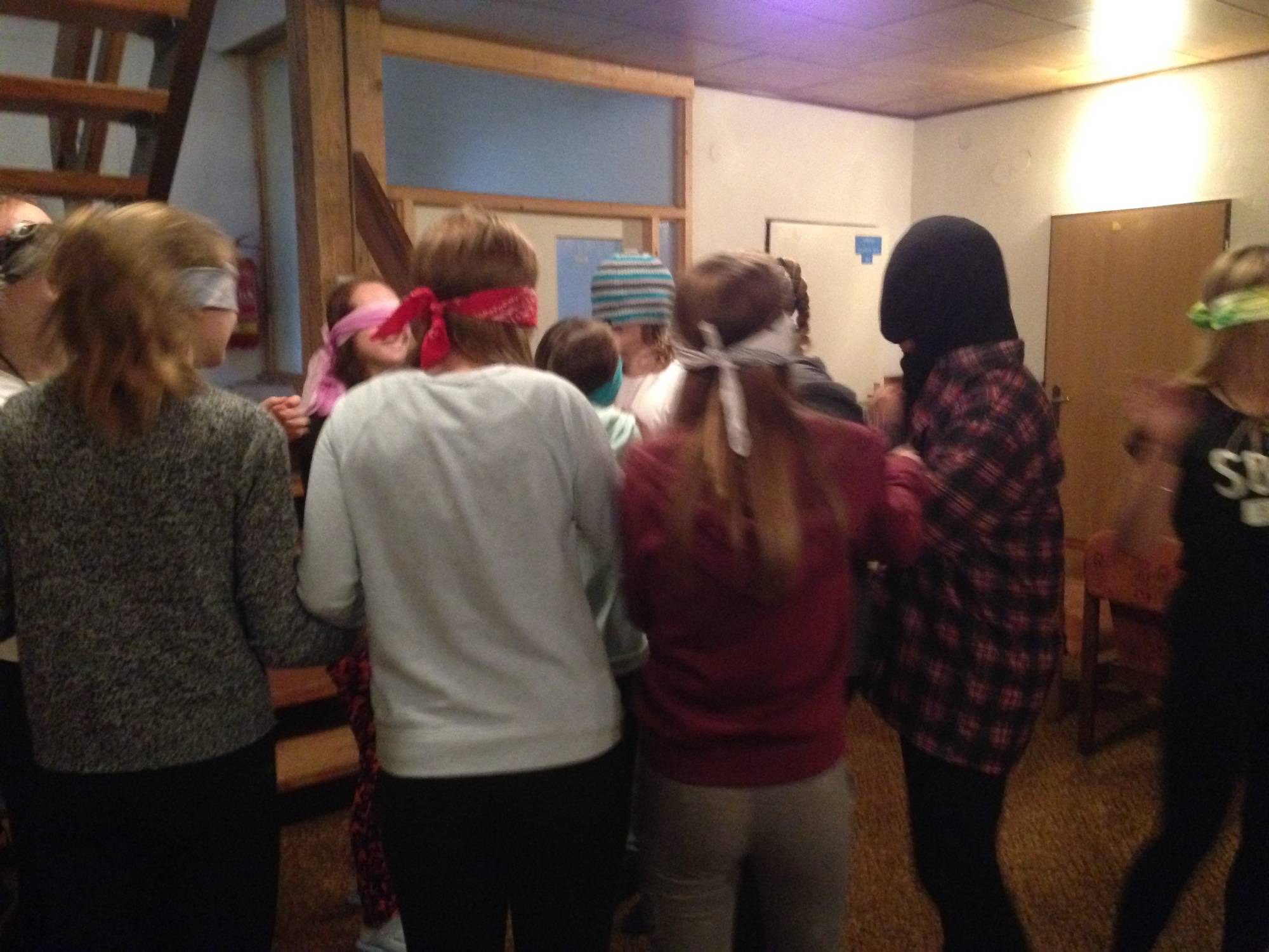 V den příjezdu nás uvítalo vcelku příznivé počasí, tudíž jsme se přesunuli ven, kde jsme hráli, po každé v jiných týmech, hry na rychlost a spolupráci. Například jsme hledali po sobě jdoucí čísla a nebo jsme si posílali tzv. elektrický proud stiskem ruky, při čemž bylo cílem se co nejrychleji chopit kamene, jenž byl na opačném konci řady, než odkud se proud posílal.