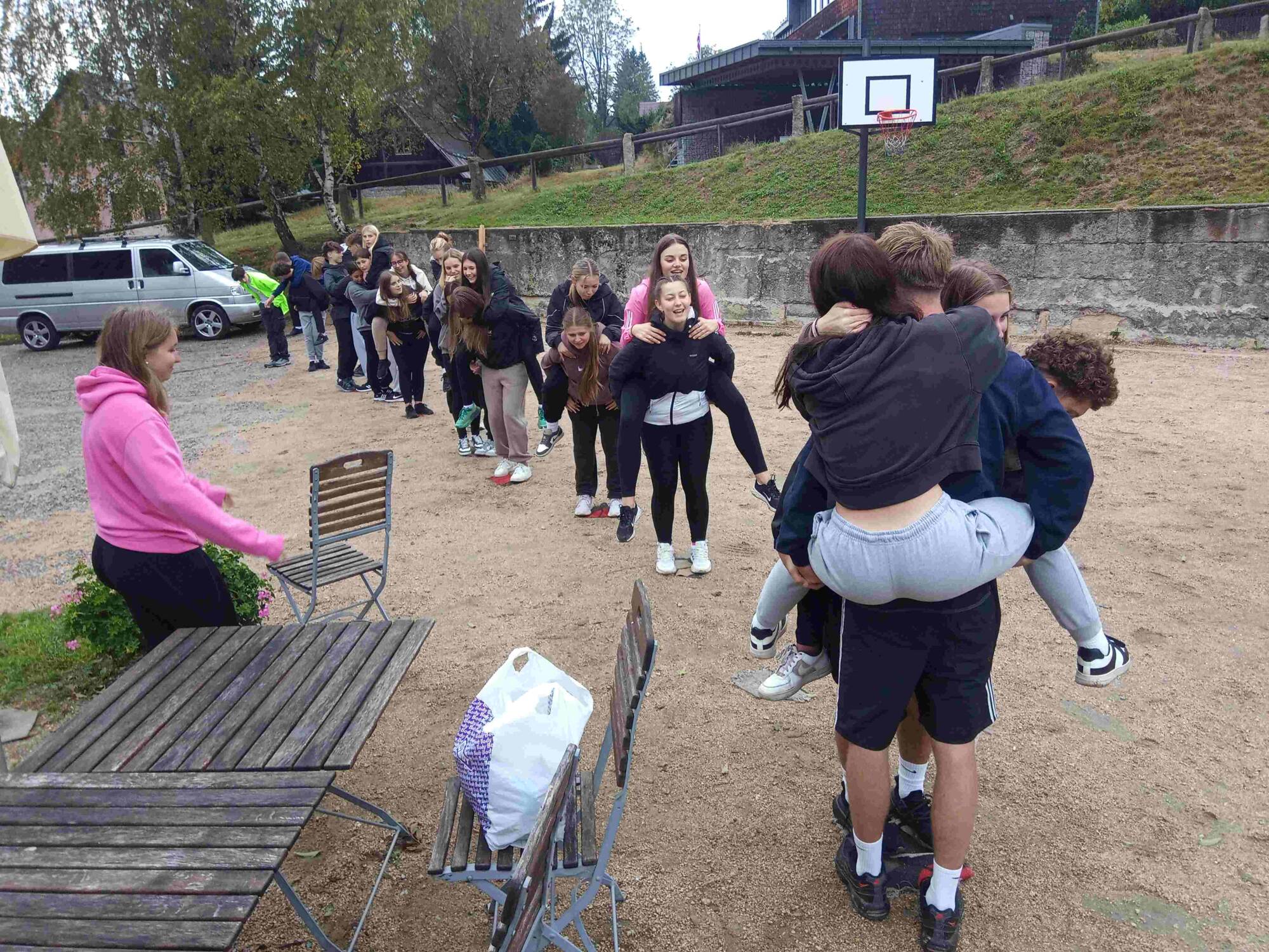 Chvíli po příjezdu na ubytování začal první program s paní psycholožkou Kateřinou Schorschovou. Hráli jsme hru Speed date, při které jsme se rozdělili na dvě poloviny, posadili se naproti sobě, dostávali témata a posouvali se od jednoho člověka ke druhému. K obědu byl vývar s nudlemi a špagety s rajčatovou omáčkou. Po skončení odpoledního klidu jsme vyrazili na túru do Jizerských hor. Došli jsme na Šámalovu chatu a přehradu Černá Nisa. Na Šámalově chatě jsme si chvíli odpočinuli, a pak pokračovali dál. Cestou jsme hráli hry, rozděleni na španělskou a německou skupinu. První hra byla klasická přetahovaná, kterou vyhráli španělštináři. Druhá hra spočívala v tom, že jsme měli dva ocásky a museli jsme je vzít ostatním. I tuto hru vyhráli španělštináři. Třetí hra byla o přenášení míče, ale nesměli jsme ho držet rukama tuto hru vyhráli němčináři. Čtvrtá hra byla o trefování stromu šiškou, a tu rovněž vyhráli němčináři. Posledním úkolem byl kvíz o tom, co jsme si říkali během cesty. Tato hra byla velmi těsná. O jeden bod v ní vyhráli němčináři. Po návratu byla večeře – plátek masa s bramborovou kaší. Po večeři jsme šli na bowling, který jsme si velmi užili. Když odbila desátá hodina, začala večerka.