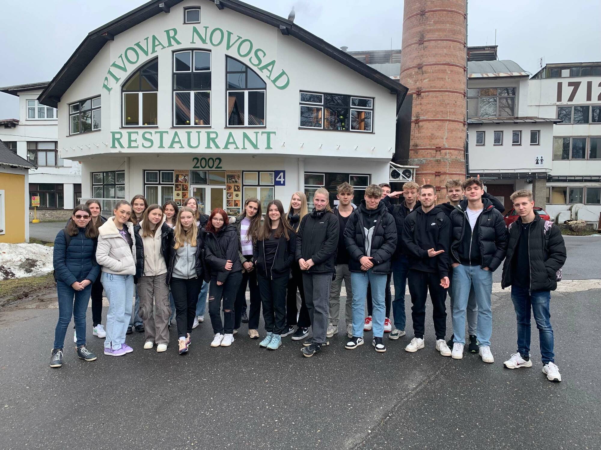Třídy druhého ročníku OA absolvovaly 20. až 22. března exkurze do skláren v Harrachově. Žáci zhlédli zakázkovou výrobu ručního luxusního nápojového skla. Navštívili jak sklářskou huť, tak i unikátní brusírnu, která je nejstarší fungující brusírnou v Evropě. Oproti minulým letům byl prohlídkový okruh rozšířen o technické zázemí brusírny s transmisním pohonem ze zdejší vodní elektrárny s Francisovou turbínou. Součástí prohlídky bylo i muzeum firmy, které mapuje více jak 300letou historii výroby skla v Harrachově. Ve dvou patrech muzea se nachází přes 5 tisíc exponátů včetně nejznámější vázy, kterou v roce 2001 rozbil nezbedný žák ZŠ a škoda se vyšplhala na 2 miliony korun. Naši žáci se však chovali vzorně a na exkurzi načerpali spoustu informací, které se jim hodí do testu ze sklářského průmyslu :).