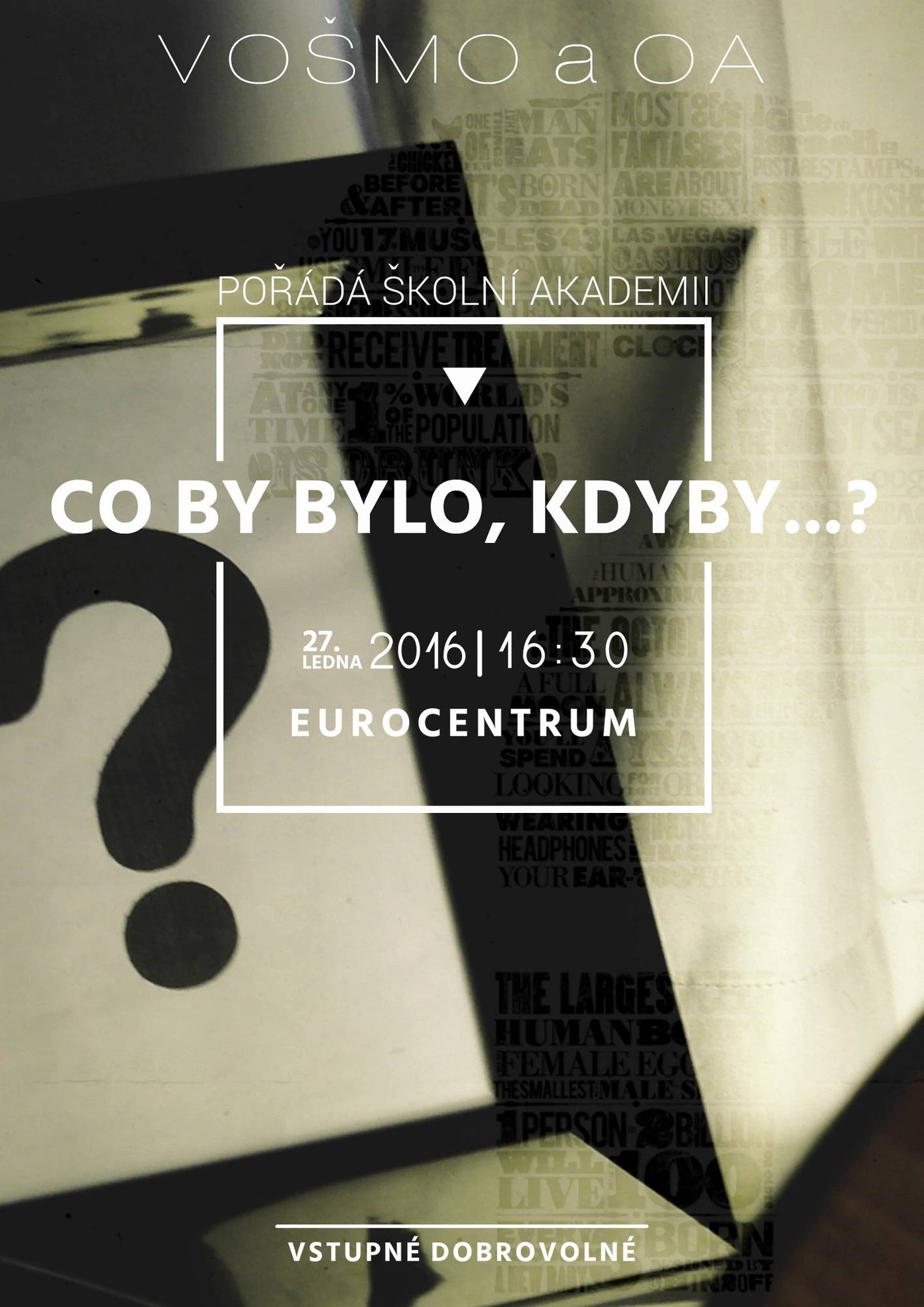 Rádi bychom pozvali všechny příznivce obchodní akademie – tedy rodiče, kamarády, učitele i žáky na  tradiční školní akademii. Tentokrát uvidíte představení všech tříd na téma „Co by bylo, kdyby…?“, uvádí třída O3.C. Přijďte 27. 1. 2016 v 16,30 do Eurocentra, vstupné dobrovolné.