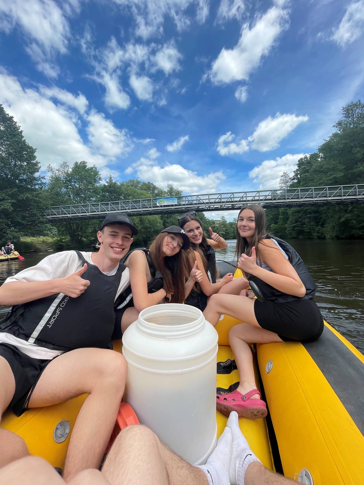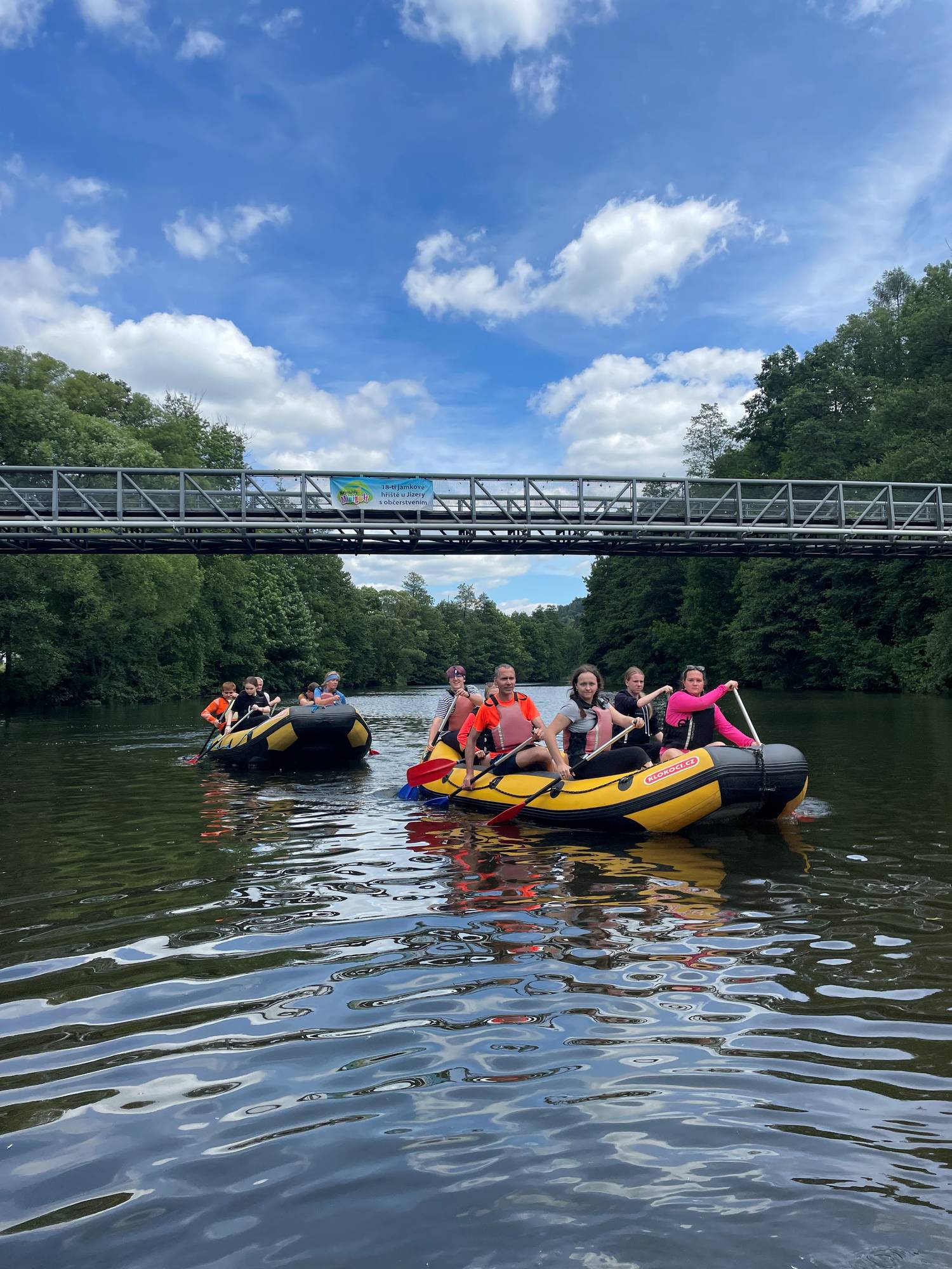 V úterý nás dovezl bus k zámku Hrubý Rohozec, odkud naše kroky mířily do Dolánek. Tam jsme převzali koloběžky a pohodovým tempem dojeli na Malou Skálu, kde jsme měli obědovou pauzu. Po posilnění v místních restauracích jsme se nalodili na rafty. Po počátečních manévrech nad jezem, kdy některé posádky museli sladit souhru v pádlování, jsme se odvážně vrhli do vln maloskalského jezu. Pak už plavba probíhala klidně, tedy až do rozpoutání velké vodní bitky, kdy nikdo nezůstal v suchu.