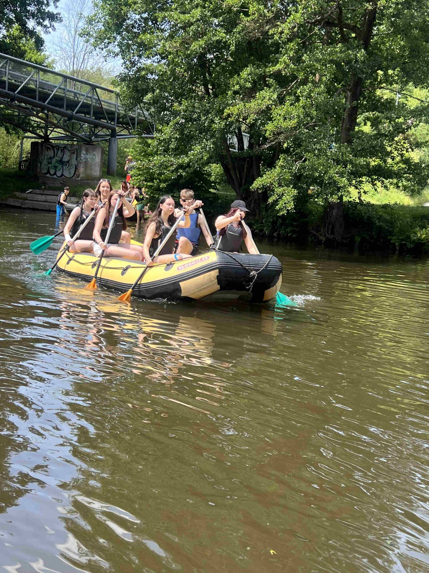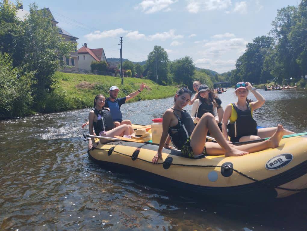 Druhý den byl plný zábavy. Ráno jsme se přesunuli do Dolánek, odkud jsme jeli koloběžkami na Malou skálu. Zde jsme se naobědvali a vyrazili jsme zpět do Dolánek, tentokrát po řece na raftech. Na vodě bylo plno legrace, pohody a sluníčka. Po cestě byly zastávky na smočení a občerstvení.