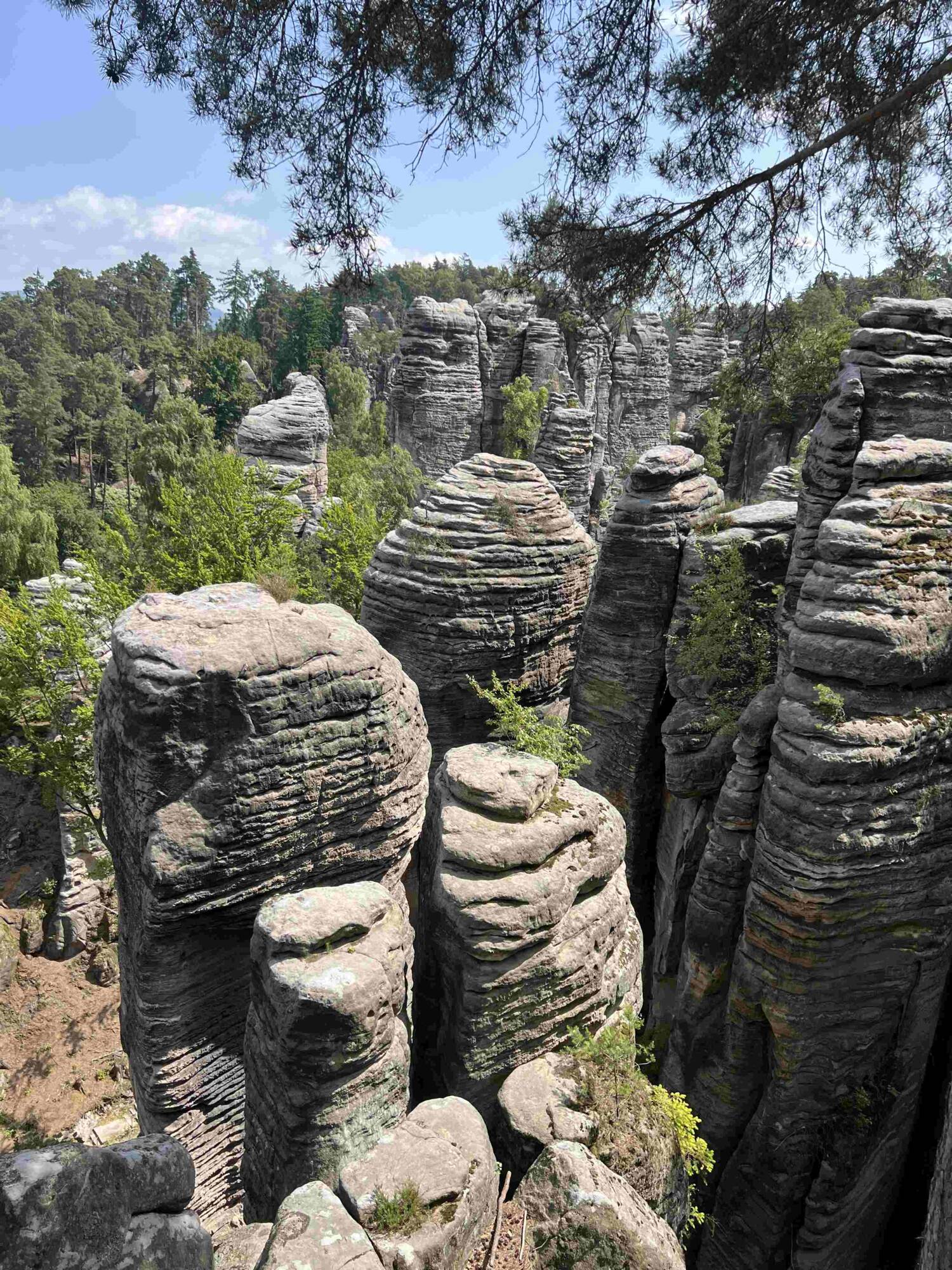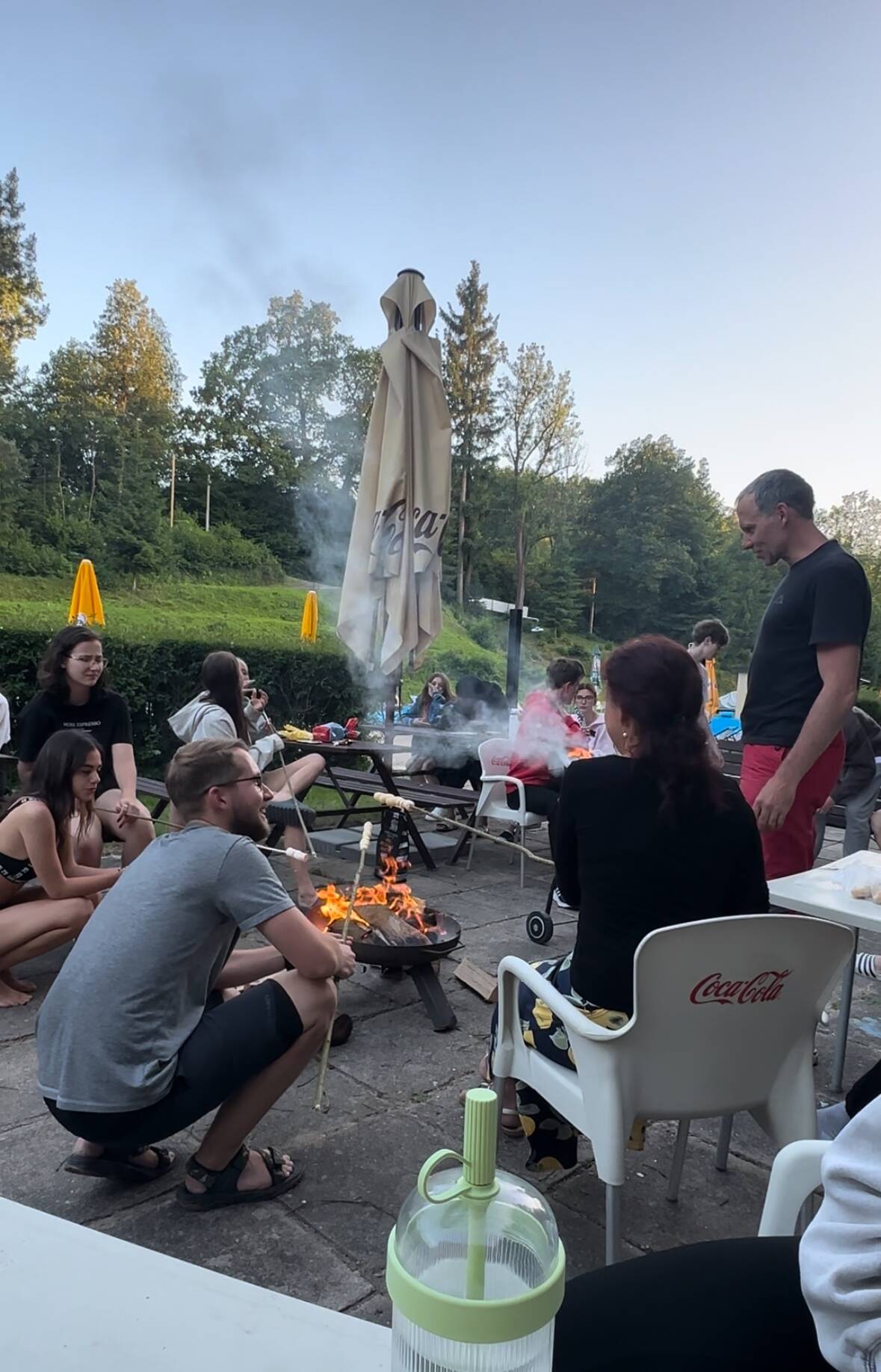 Čtvrtý den jsme se vydali pěšky do pohádkového Jičína. Po cestě nesměla chybět zastávka v Prachovských skalách. Zde jsme se kochali krásnými pískovcovými útvary, nechyběl ani dárek od učitelů v podobě nanuku. V Jičíně našim hlavním cílem byl místní aquapark, kde jsme se mohli osvěžit, projet si tobogány a načerpat síly na společný večerní program plný hudby, jídla a zábavy. Třešničkou na dortu byly trdelníky od paní učitelky Horské pečené na ohni.