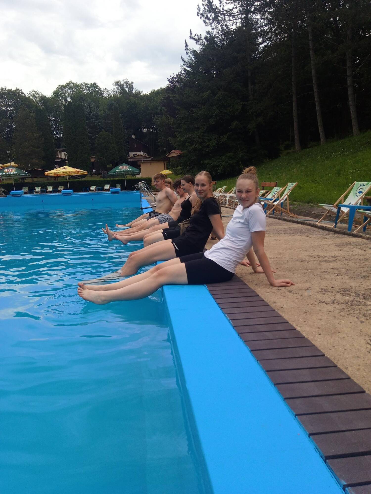 Ve čtvrtek byl na programu celodenní výlet do Jičína. Dopoledne jsme navštívili zříceninu hradu Pařez. Dále jsme zamířili do Prachovských skal, kde nás čekala procházka mezi nádhernými skalními útvary. V časných odpoledních hodinách jsme dorazili do cíle naší cesty. Po zhlédnutí krás města Jičína a vydatném obědě jsme se vypravili do akvaparku Kníže, kde jsme si užili vodní radovánky a zasloužený odpočinek. Večer proběhlo vyhlášení vítězů ve střelbě ze vzduchovky. Nechyběl ani táborák. Část spolužáků u něj zpívala známé hity a část se věnovala volejbalu a dalším sportovním aktivitám.