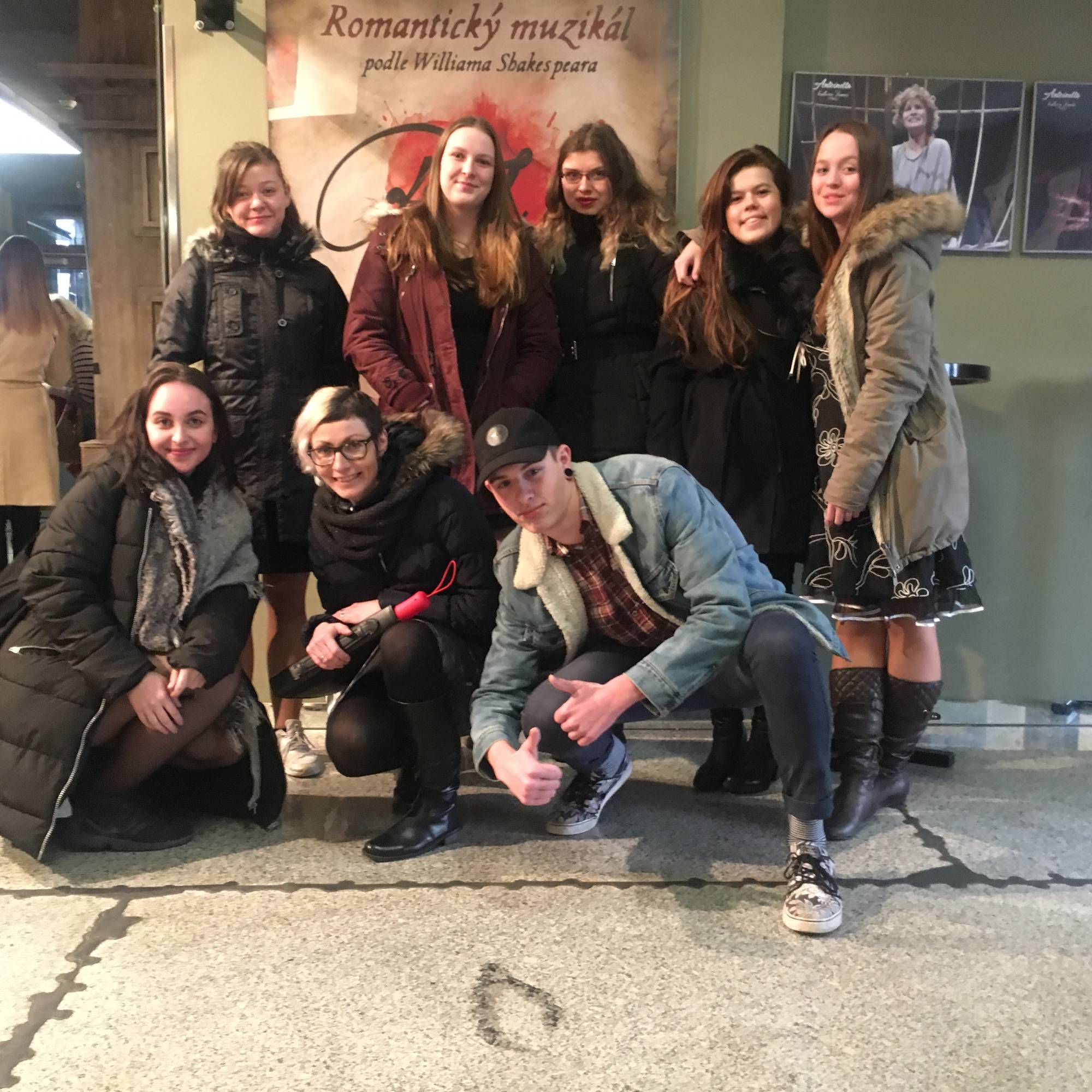 Dne 29. 1. 2018 se třída O2.B za doprovodu paní učitelky Kotenové a Ješkeové vydala do Prahy na muzikálové divadelní představení Romeo a Julie. Praha nás příjemně překvapila svým skoro jarním počasím a po celou dobu nás nezastihla ani kapka deště. Z Černého Mostu jsme vyrazili metrem na Můstek, kde jsme dostali na chvíli rozchod. V 10:15 jsme měli sraz před divadlem Hybernia. Všichni dorazili a nikdo se neztratil. Od 11: 00 nás čekalo představení. Hra se všem žákům až na malé drobnosti velice líbila. Muzikál byl plný romantiky, působivých melodií a textů a my jsme mohli známý milostný příběh prožívat s herci, kteří se přesvědčivě vžili do svých rolí… Představení skončilo ve 13:45, a tím i celá naše exkurze.