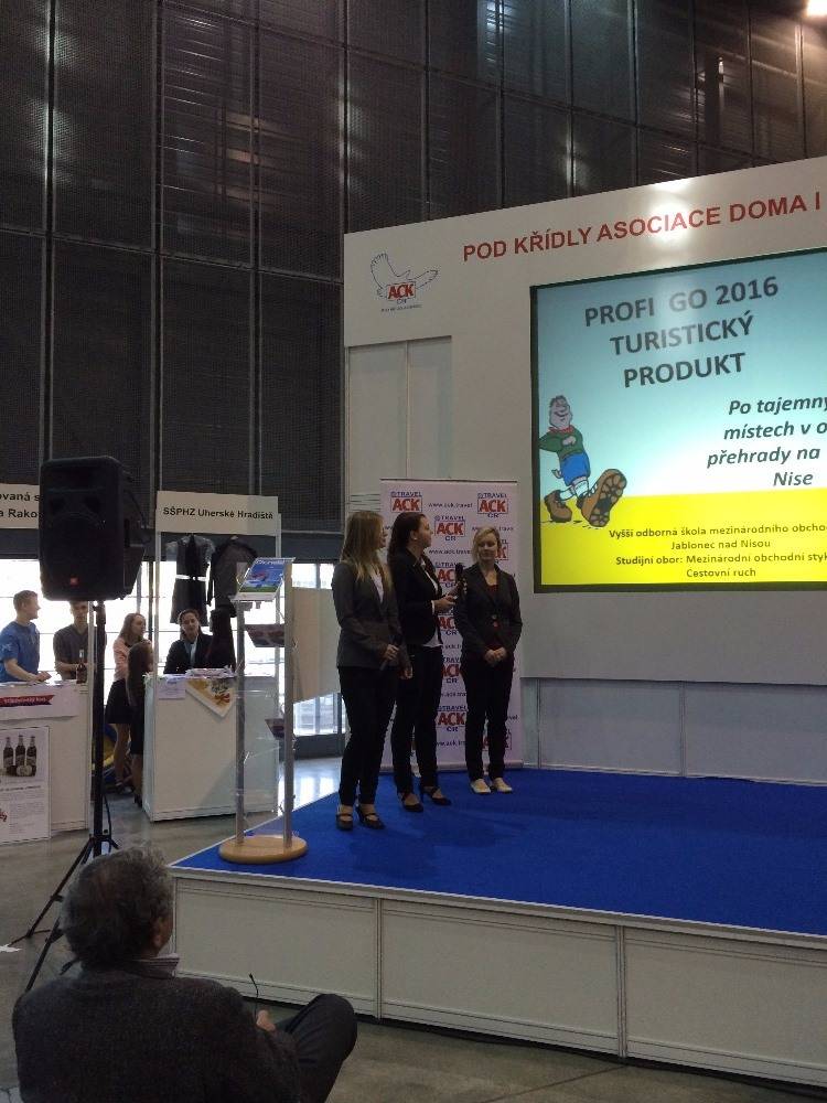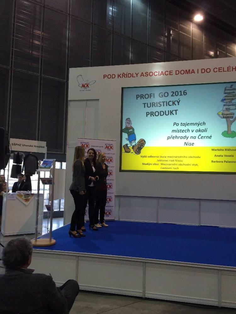 Soutěžní disciplínou byl již 4. ročník soutěže PROFI GO –TURISTICKÝ PRODUKT. Tříčlenný tým studentek vyšší odborné školy ve složení Markéta Bláhová, Aneta Veselá a Barbora Palasová sestavil zájezd s názvem „Po tajemných místech v okolí přehrady na Černé Nise“. Tento produkt zaujal odbornou porotu díky umístění do atraktivní lokality, výběru vhodného segmentu trhu, originalitě nápadu, provedené finanční analýze, marketingu a reálnosti uskutečnění. Zájezd velmi zaujal i přihlížející veřejnost a přinesl našemu soutěžnímu týmu třetí místo. Naše škola tím navázala na vynikající výsledky z minulých let, kdy jsme v 1. Ročníku soutěže obsadili 2. místo, v 2. ročníku dokonce 1. místo a ve 3. ročníku 2. místo. Naše studentky potvrdily i v letošním ročníku pozici favoritů a přispěly k prezentaci našeho regionu – Libereckého kraje a především Jablonecka.