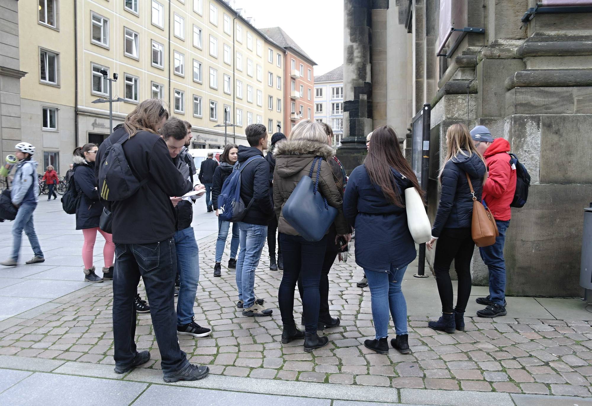 Na počátku prohlídky města stojí Neue Rathaus, Nová radnice. Zde studenty čekal mimo jiné také první úkol na pracovním listu, který si pro studenty dopředu připravila paní učitelka. Úkoly studenty provázely po celou dobu prohlídky města.