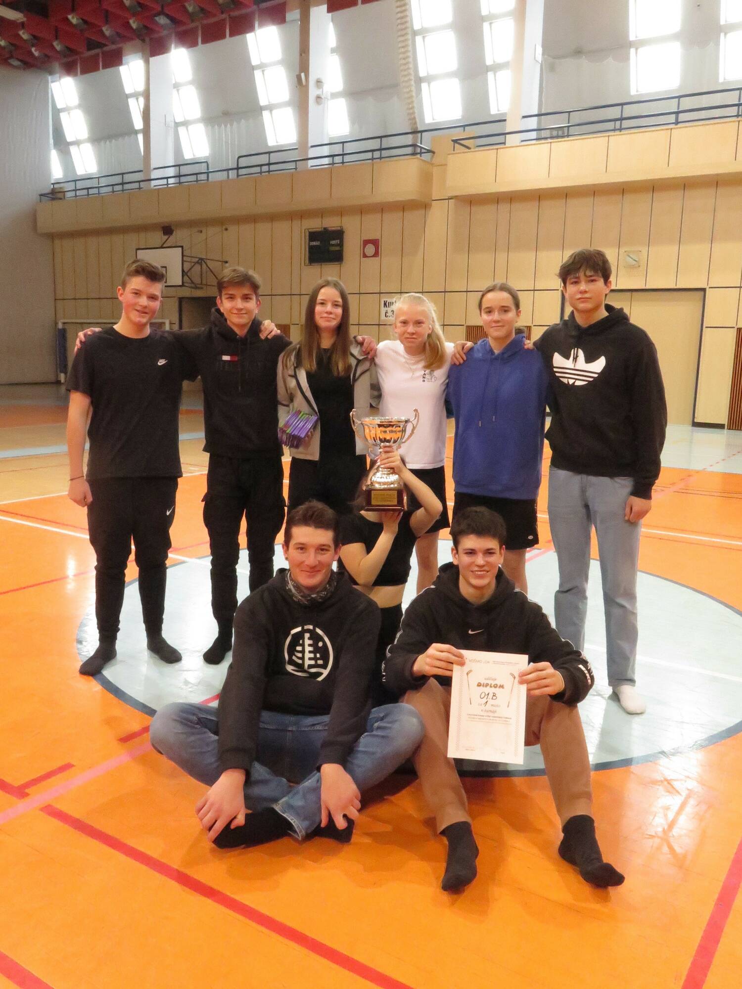 V závěru turnaje proběhlo oficiální vyhlášení výsledků. První tři týmy obdržely diplomy i drobné ceny. Vítězná třída O1.B si přebrala z rukou pana ředitele hlavní cenu soutěže, a to putovní pohár VOŠMO a OA. Na podstavci poháru tak přibude další štítek s novým vítězem.