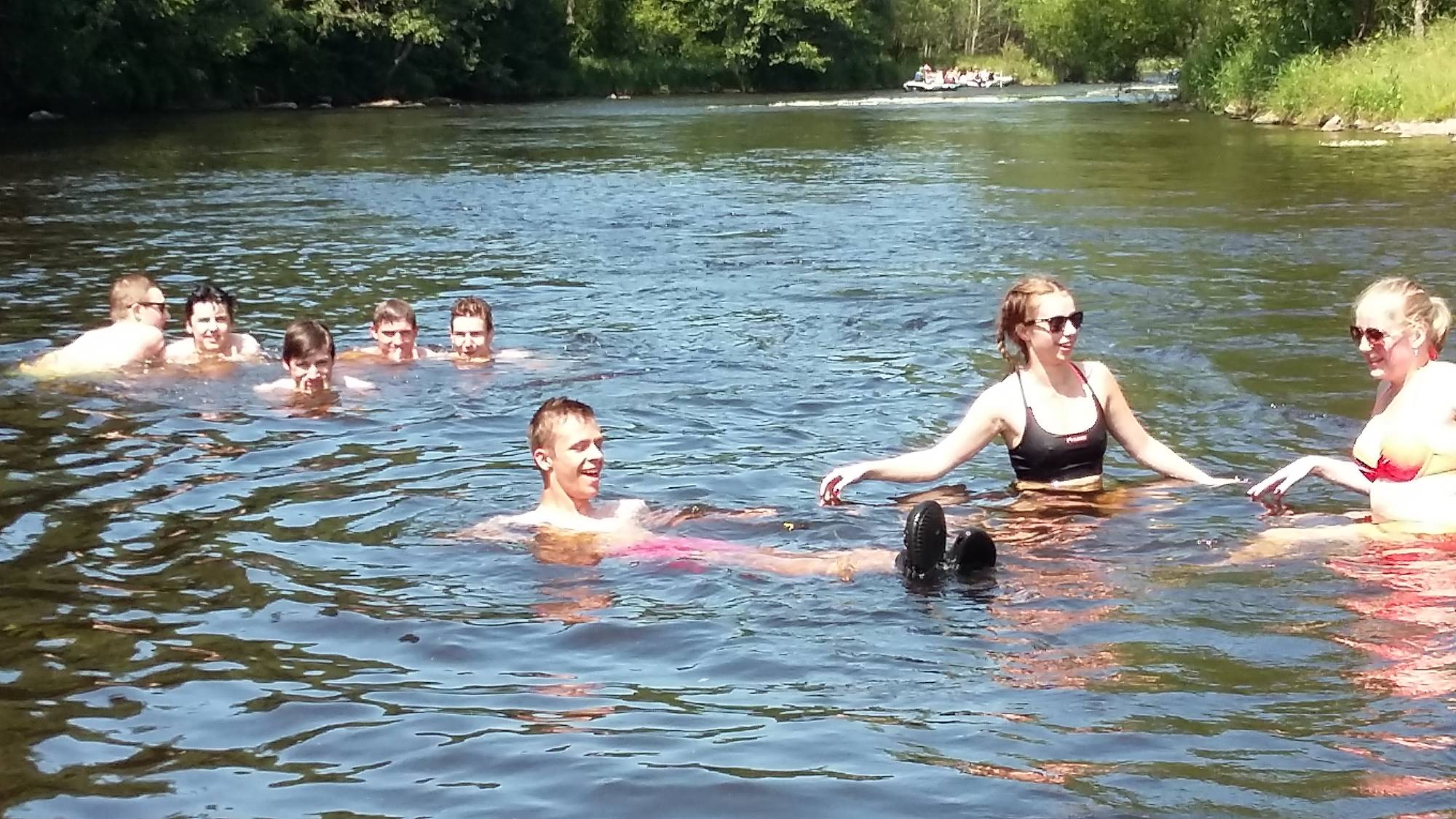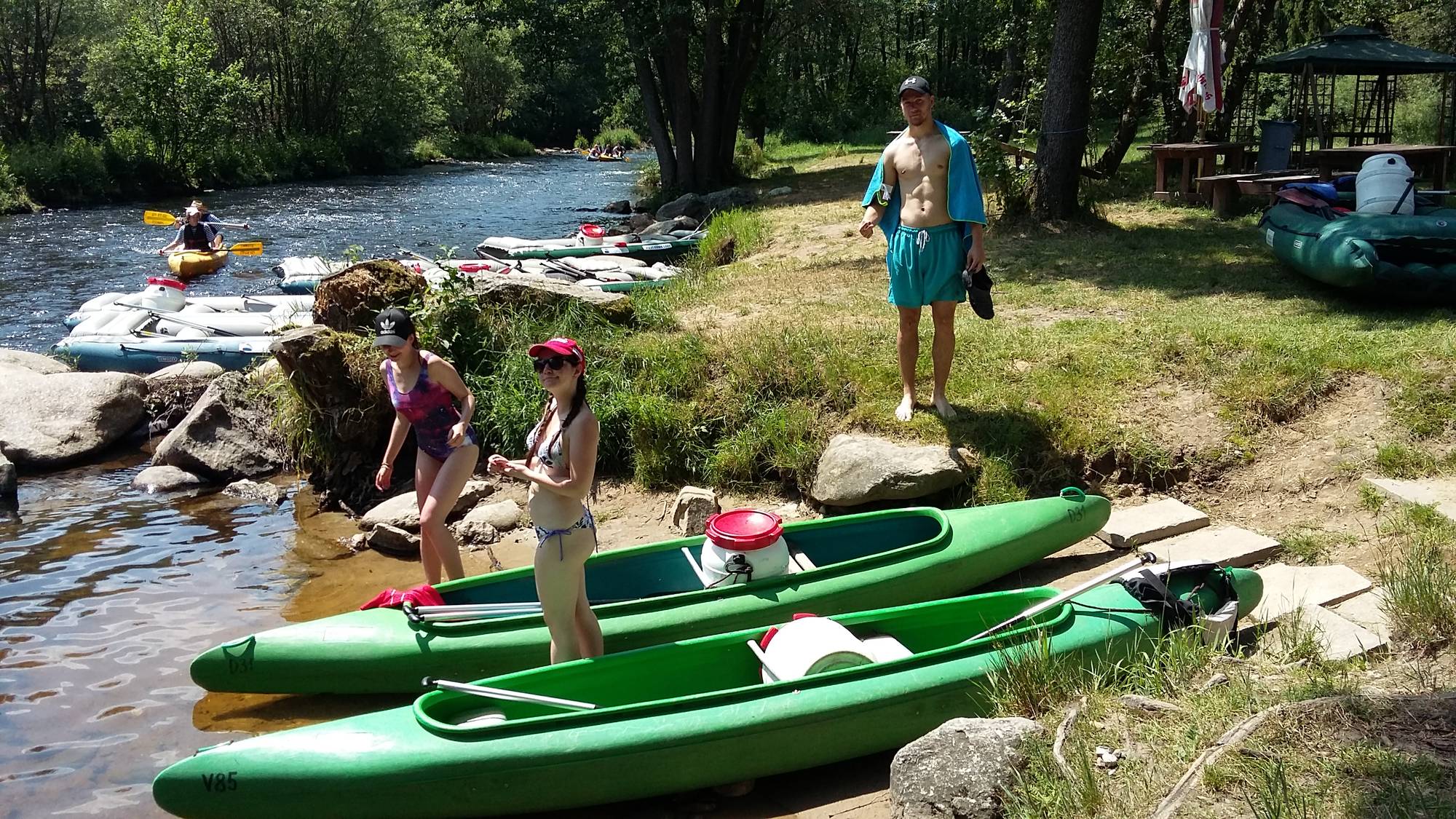 Čtvrtek byl pro nás posledním dnem na vodě, sluníčko se na nás opět usmálo, a tak někteří z nás sušili, co se dalo. Řekla bych, že právě dnes byla řeka nejpomalejší, ale to myslím nikomu z nás nedělalo větší potíže. Cílem pro nás byl kemp Koruna ve Zlaté Koruně. Lodě jsme odevzdali hned po příjezdu, naposledy jsme postavili stany a divili se, že to tak rychle uteklo.