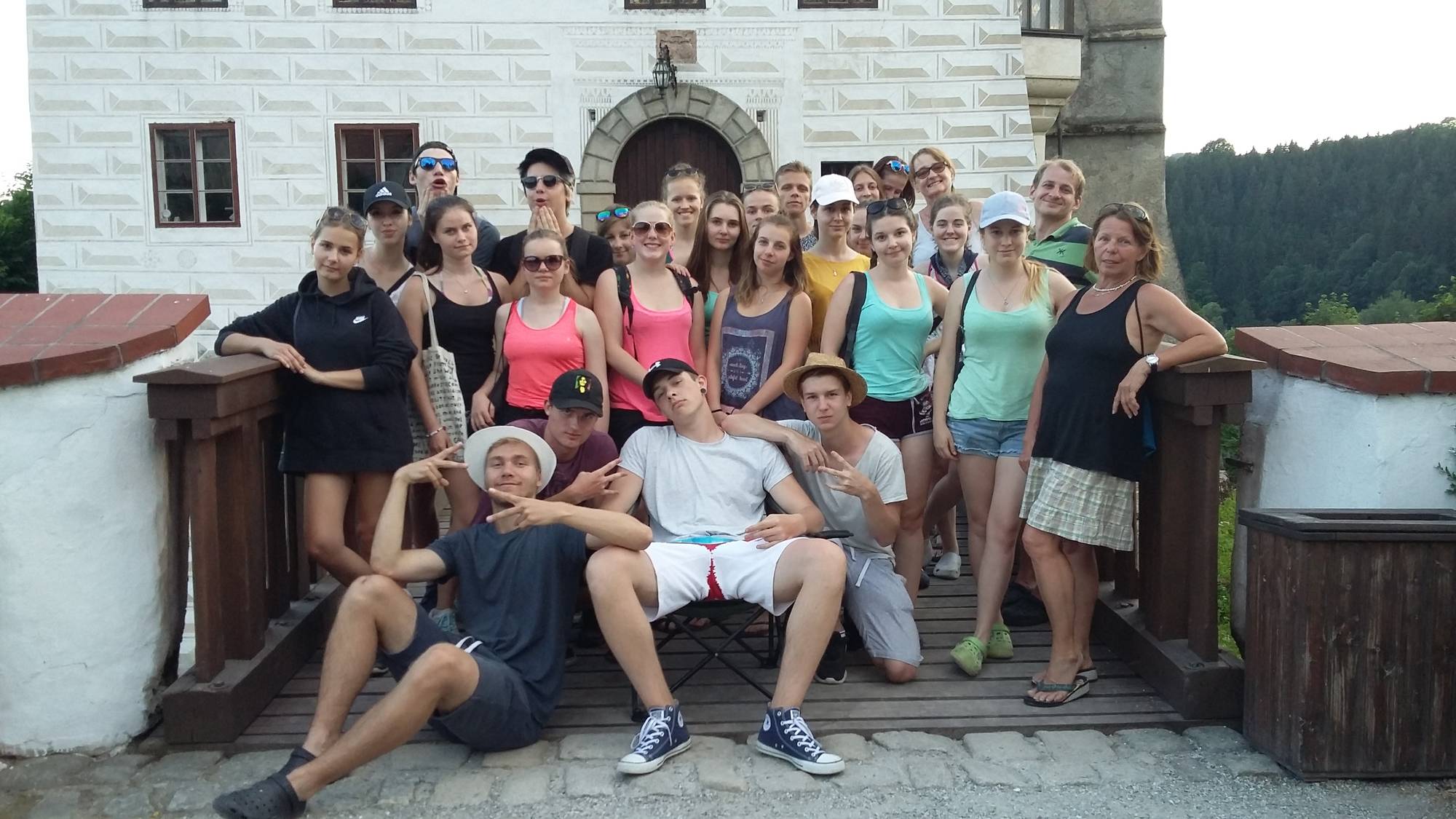 V pondělí 19. 6. 2017 se část druhého ročníku společně s učiteli, Elen Devátou, Miladou Ješkeovou, Martinou Linkovou a Jiřím Lukešem sešla na vlakovém nádraží v Rychnově, aby vyjela vstříc mělkým vodám řeky Vltavy. Po dlouhých šesti hodinách cesty jsme už hledali místo pro naše stany v kempu Pod Hrází ve Vyšším Brodě. Rozházeli jsme se do skupinek a cvičně naskákali do lodí.