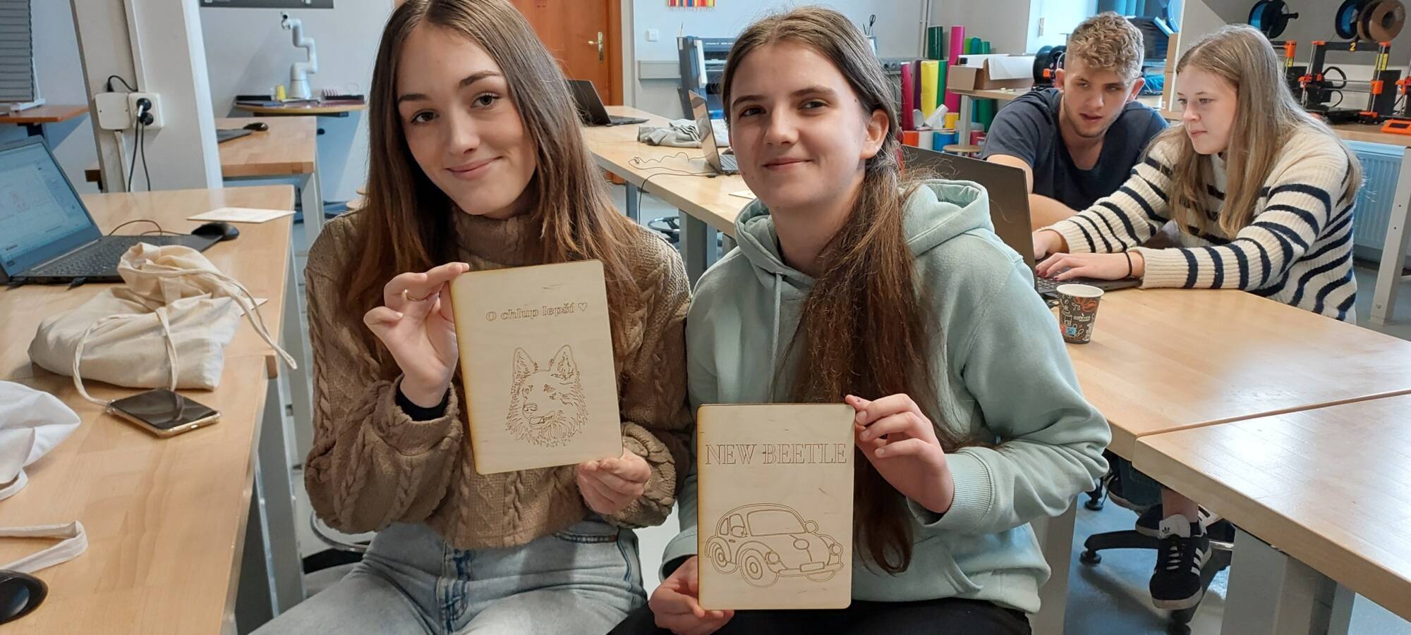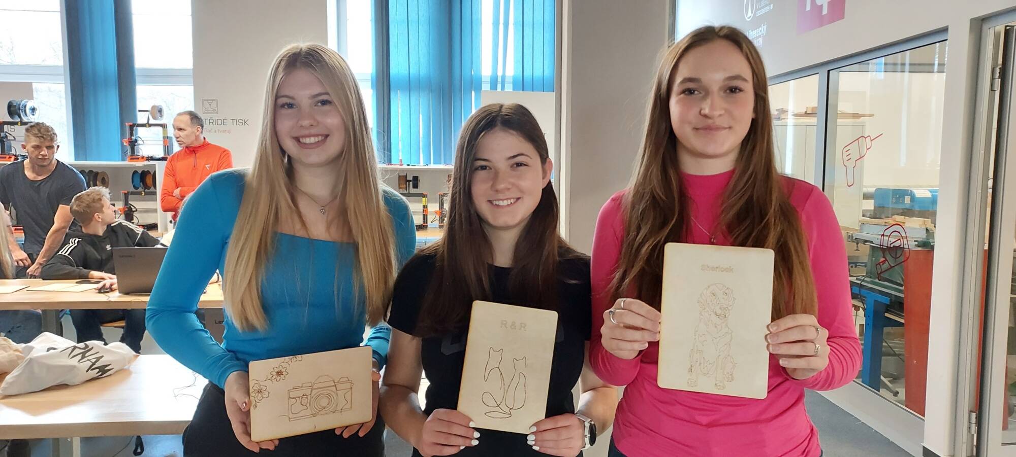 Vrchol workshopu spočíval v tvorbě vlastních vektorových návrhů. S využitím CO2 laseru gravírovali své unikátní výtvory na překližku. Tato praktická část nejen posílila jejich dovednosti v CorelDRAW, ale také jim ukázala konkrétní využití vektorové grafiky v reálném světě.