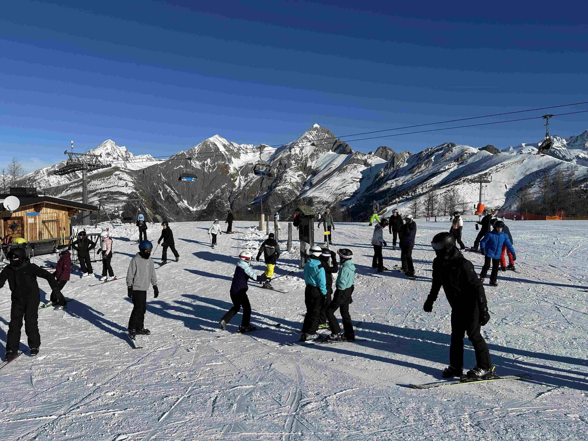 Druhý den ráno jsme se vydali rovnou do skiareálu Sillian, vzdáleného necelou hodinu od našeho ubytování. Tam jsme se rozdělili do čtyř skupin podle výkonnosti a zbytek dne jsme lyžovali. Následující dny jsme navštívili další dvě lyžařská střediska – Zettersfeld a Matrei/Kals. V rámci výcviku probíhala různá cvičení i soutěže a zábava nás čekala i v lyžařském snowparku.